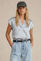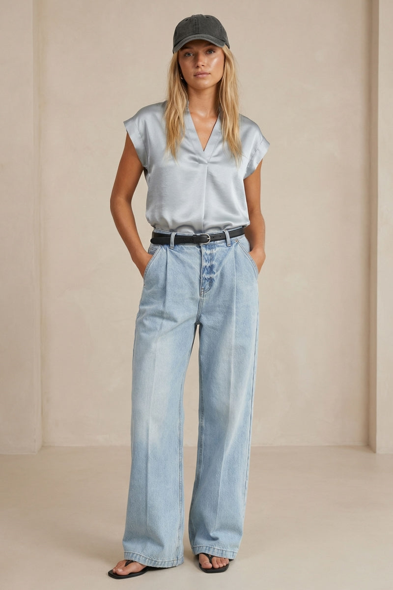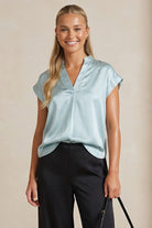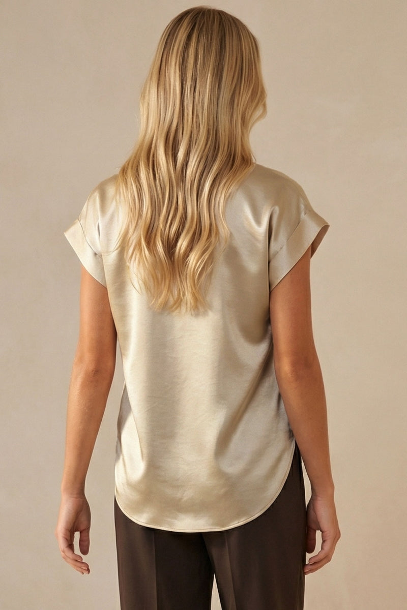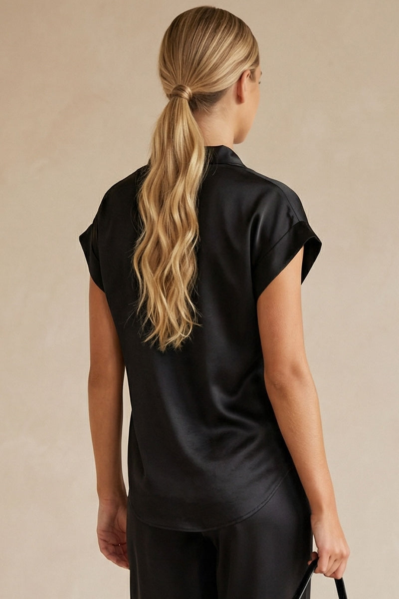 Relaxed Cap Sleeve Satin Blouse