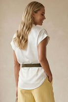 ╴Relaxed fit with cap sleeves for effortless polish.