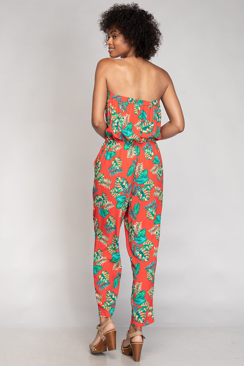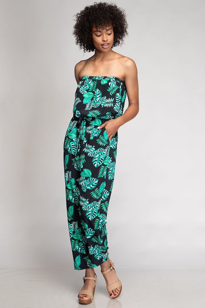 Bold tropical print with a strapless tube neckline for a sun-ready vibe.