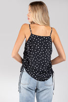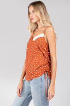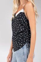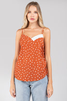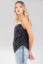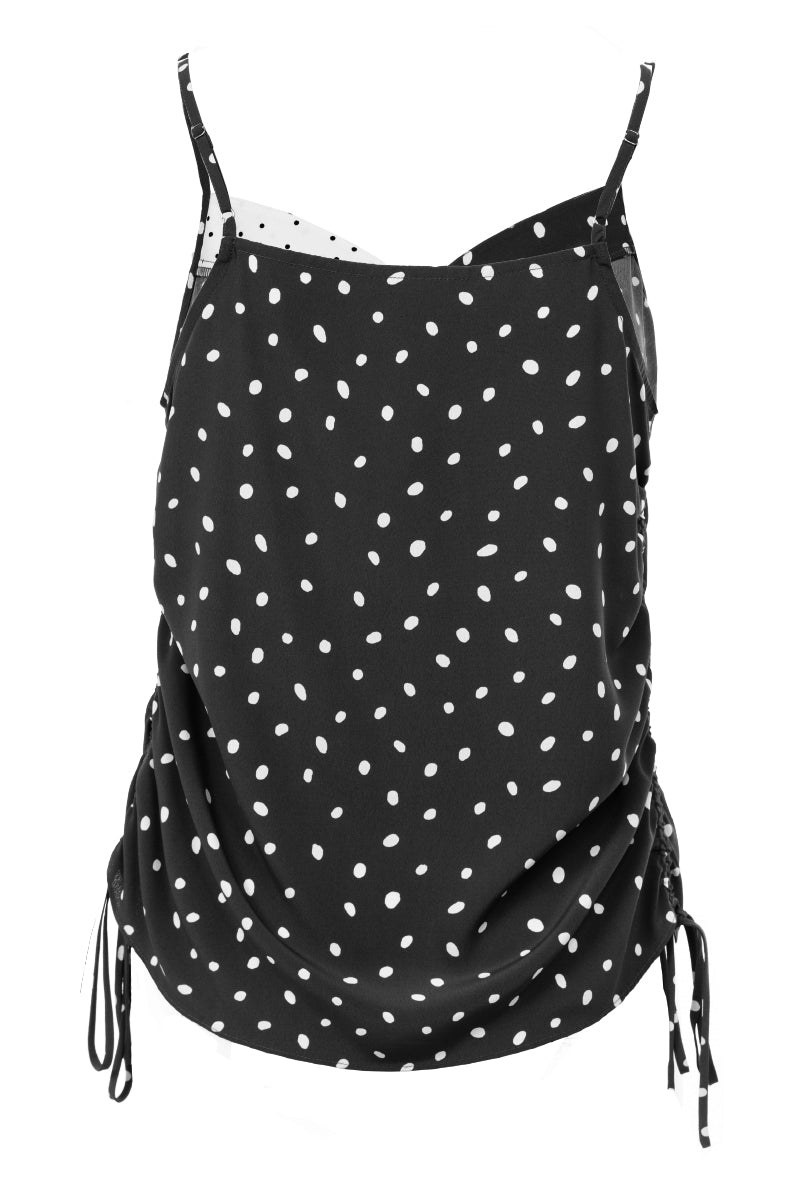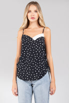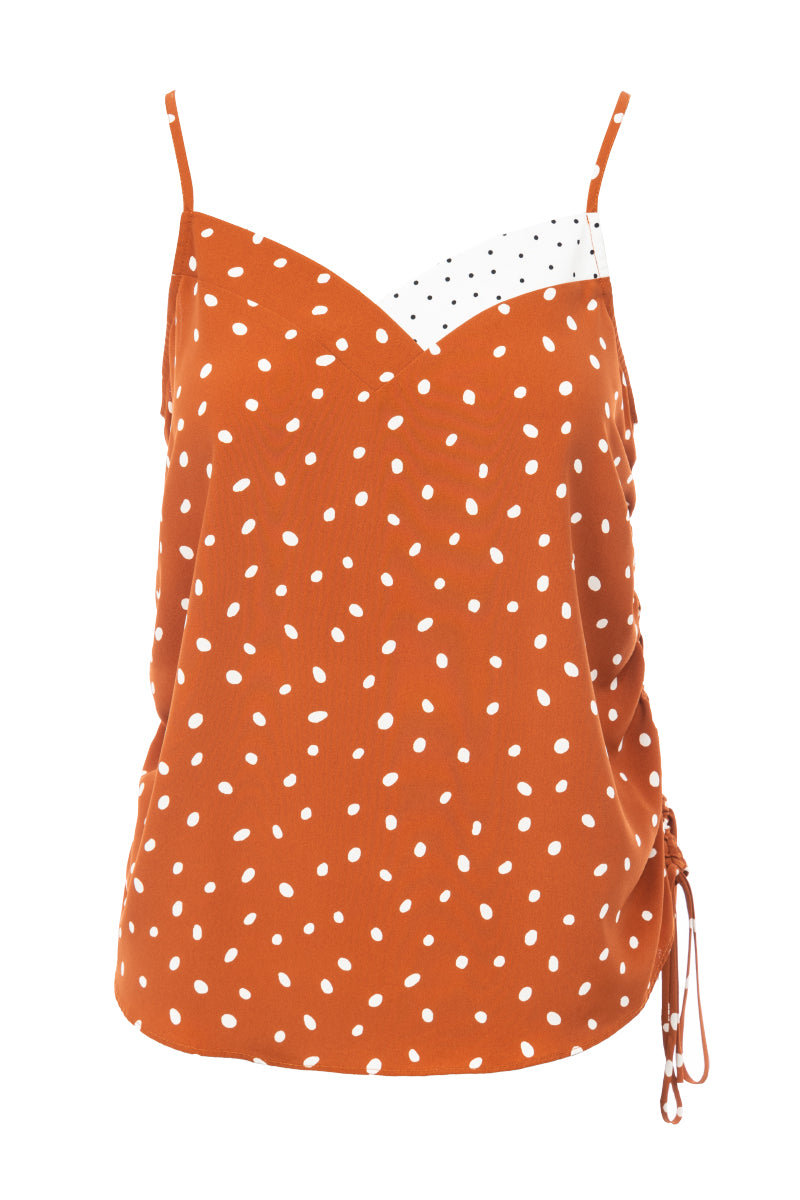 ╴Sharp V-neckline framed with contrast straps for a modern, eye-catching finish.