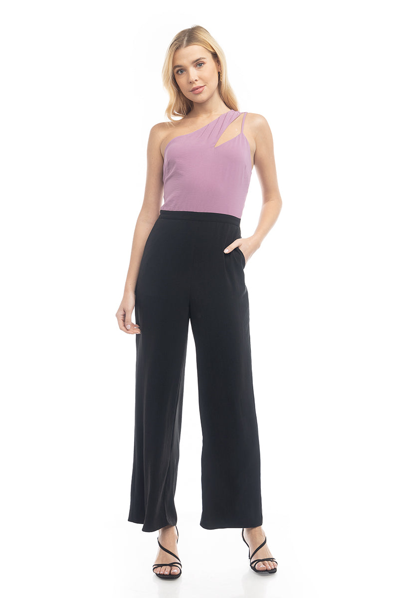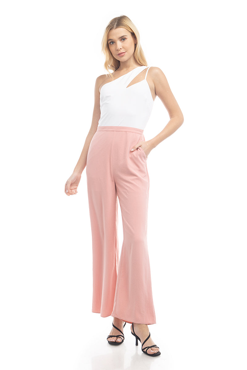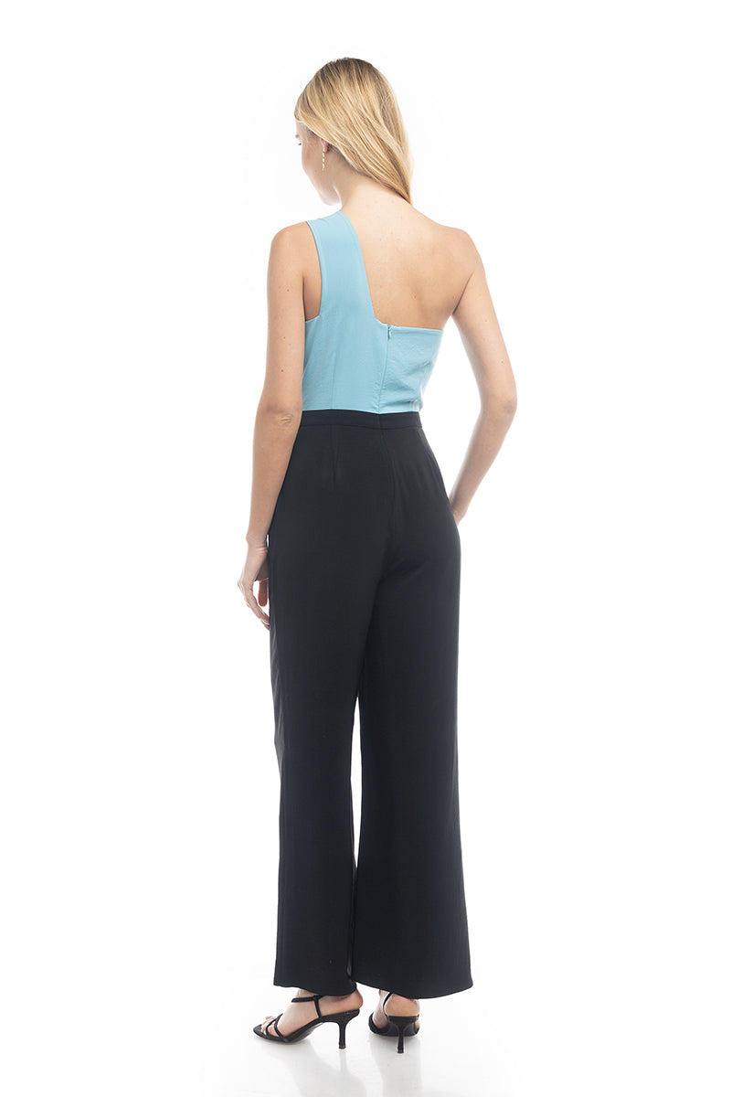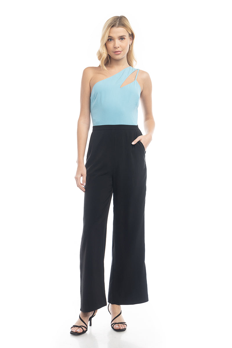 Asymmetric Neck Two-Tone Jumpsuit