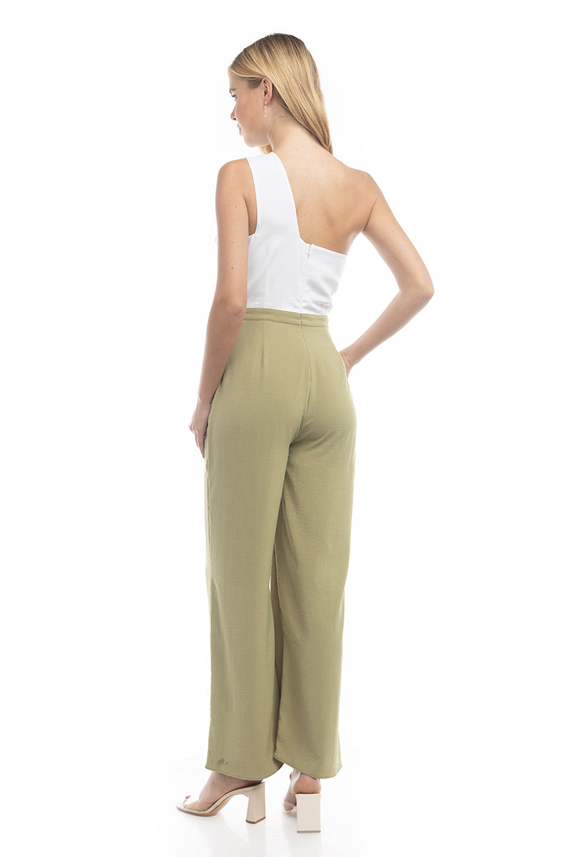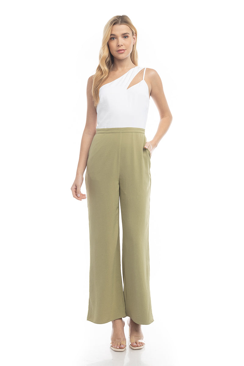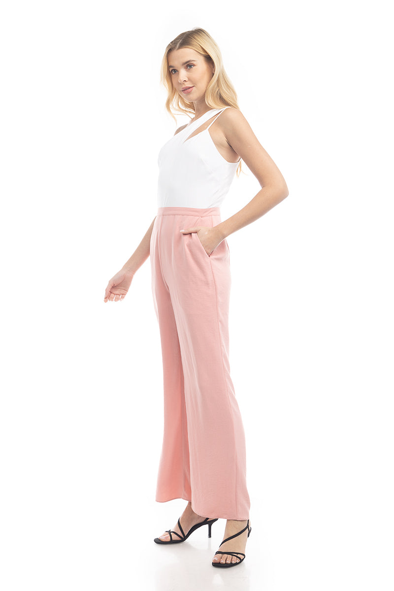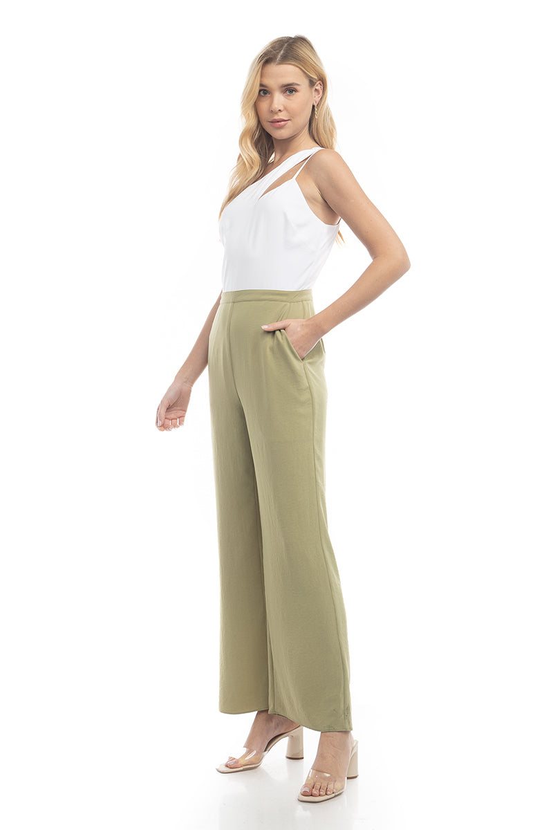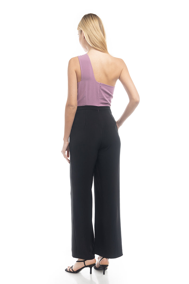 Asymmetric Neck Two-Tone Jumpsuit
