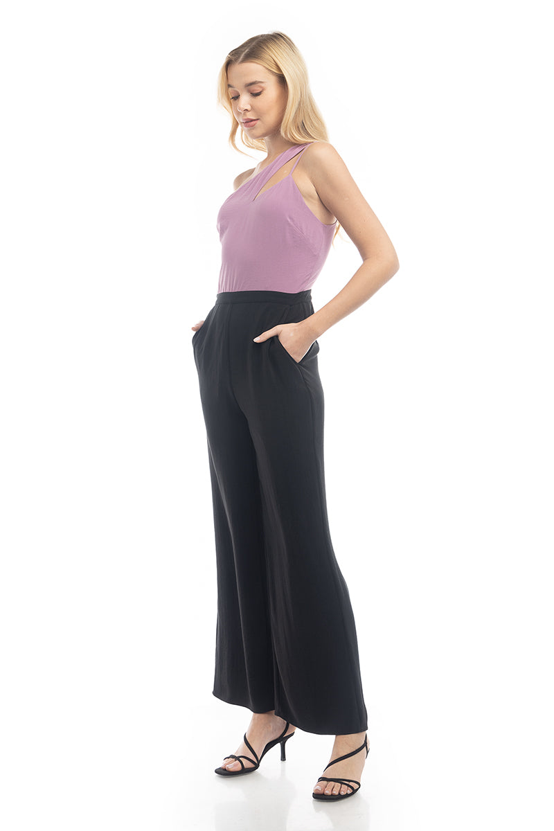 One Shoulder Silky Satin Jumpsuit