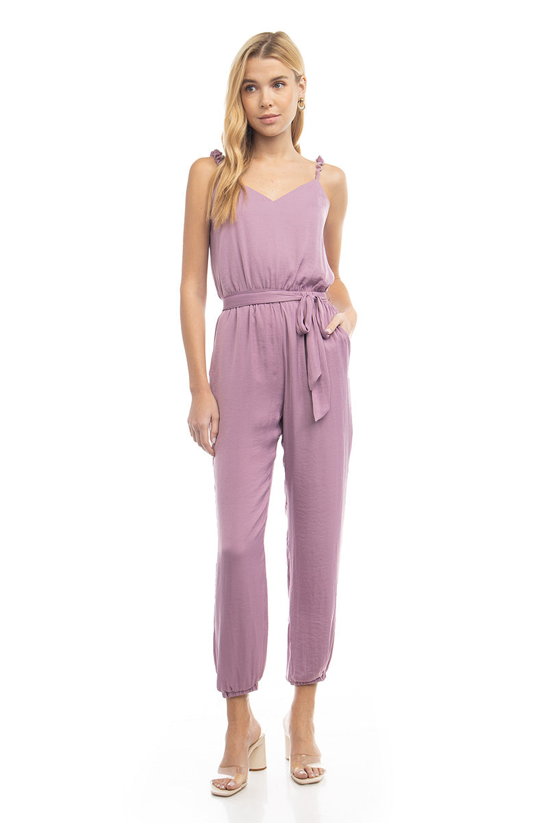 Sleeveless Wide-leg Jumpsuit With Tie Waist Belt