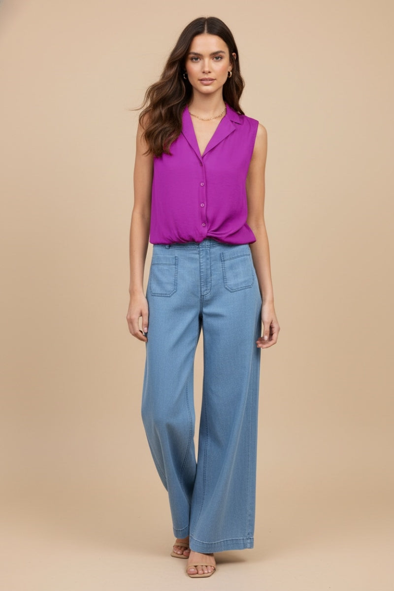 Knotted Sleeveless Collared Top - SU