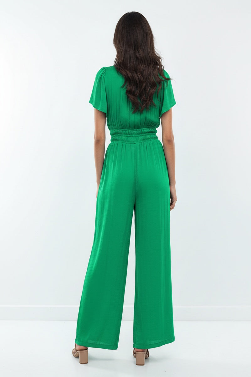 Short Sleeve Wide Leg Flowy Jumpsuit