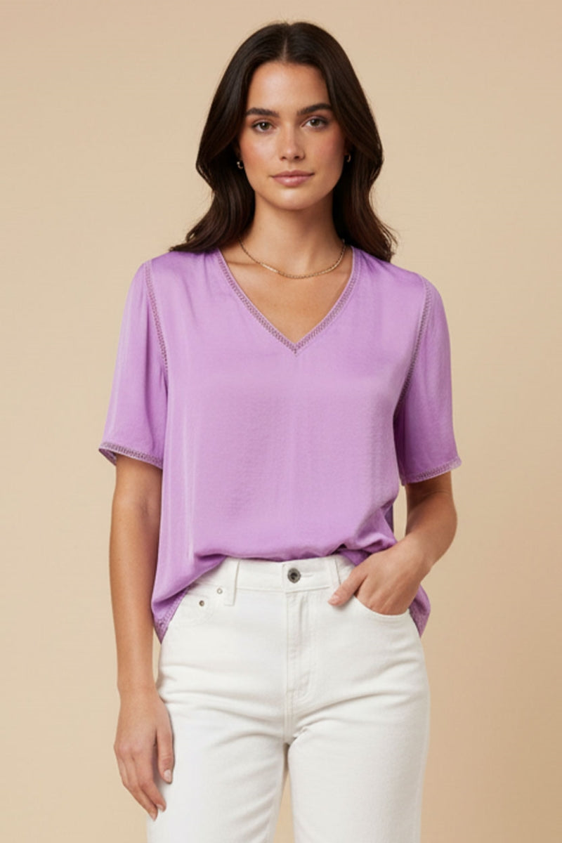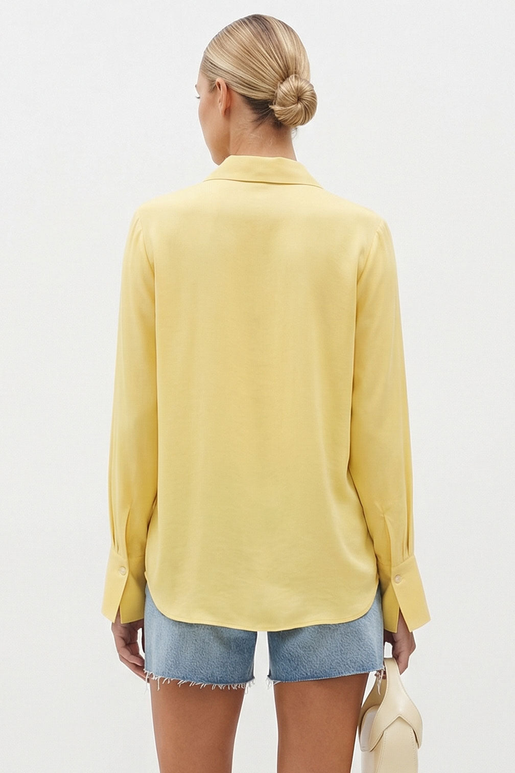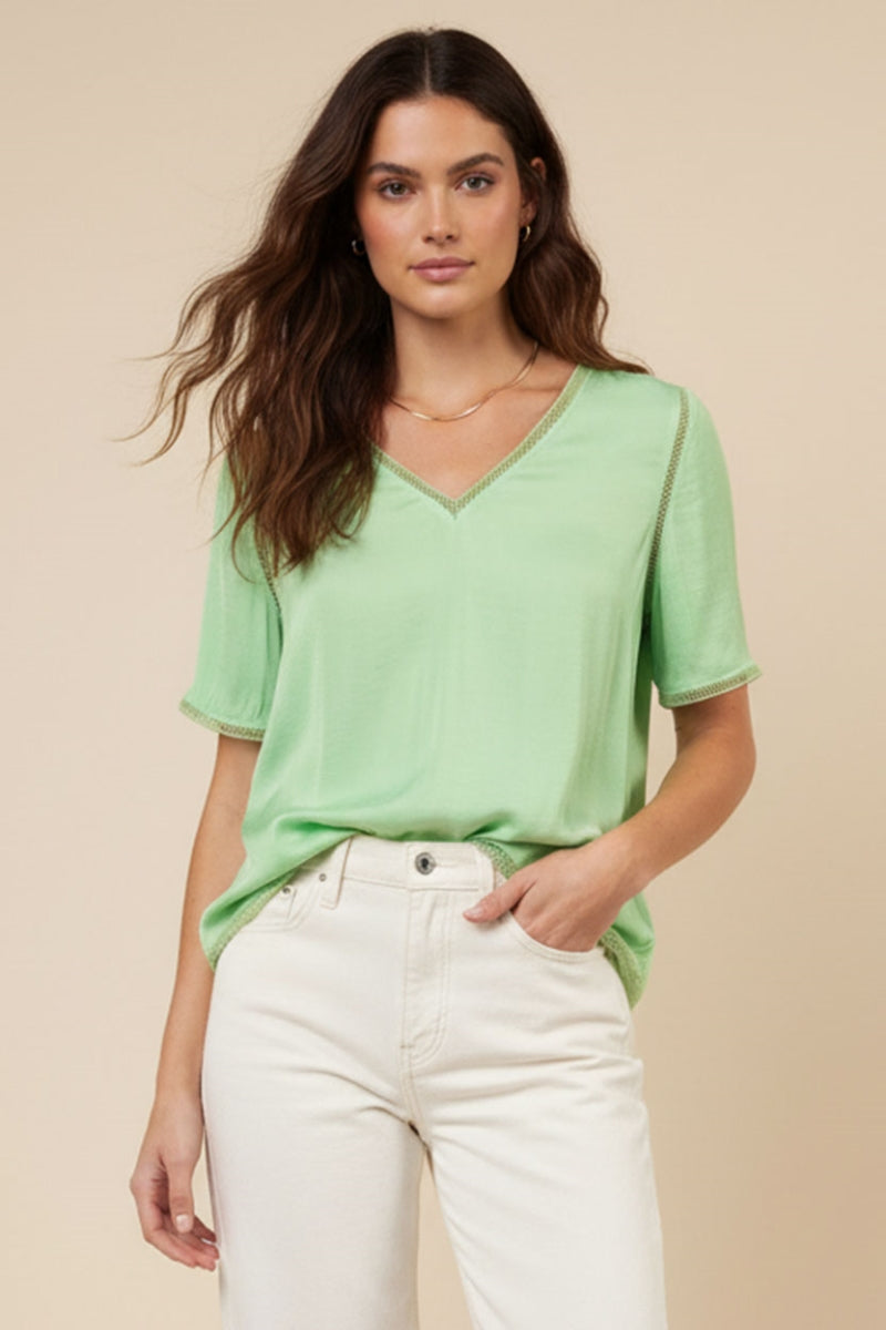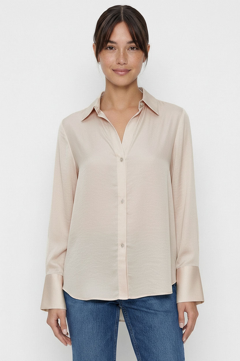 V-Neck Blouse With Bands Sleeve in Crinkle Satin