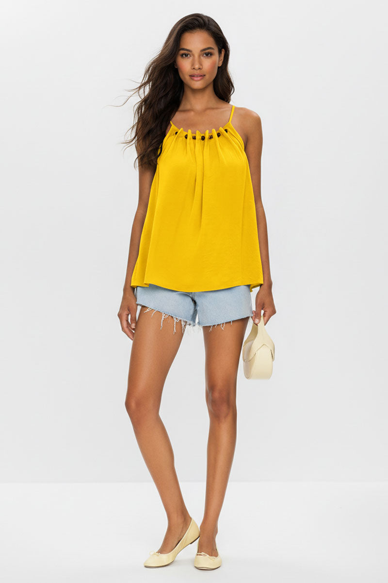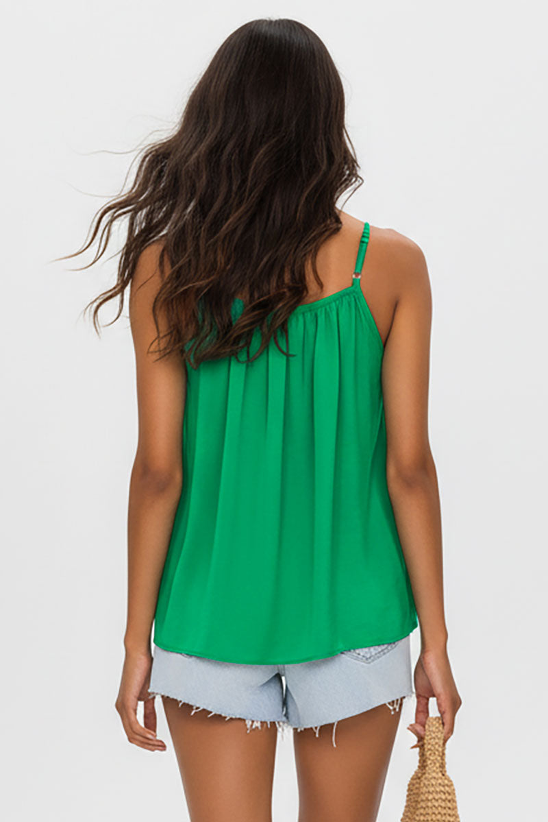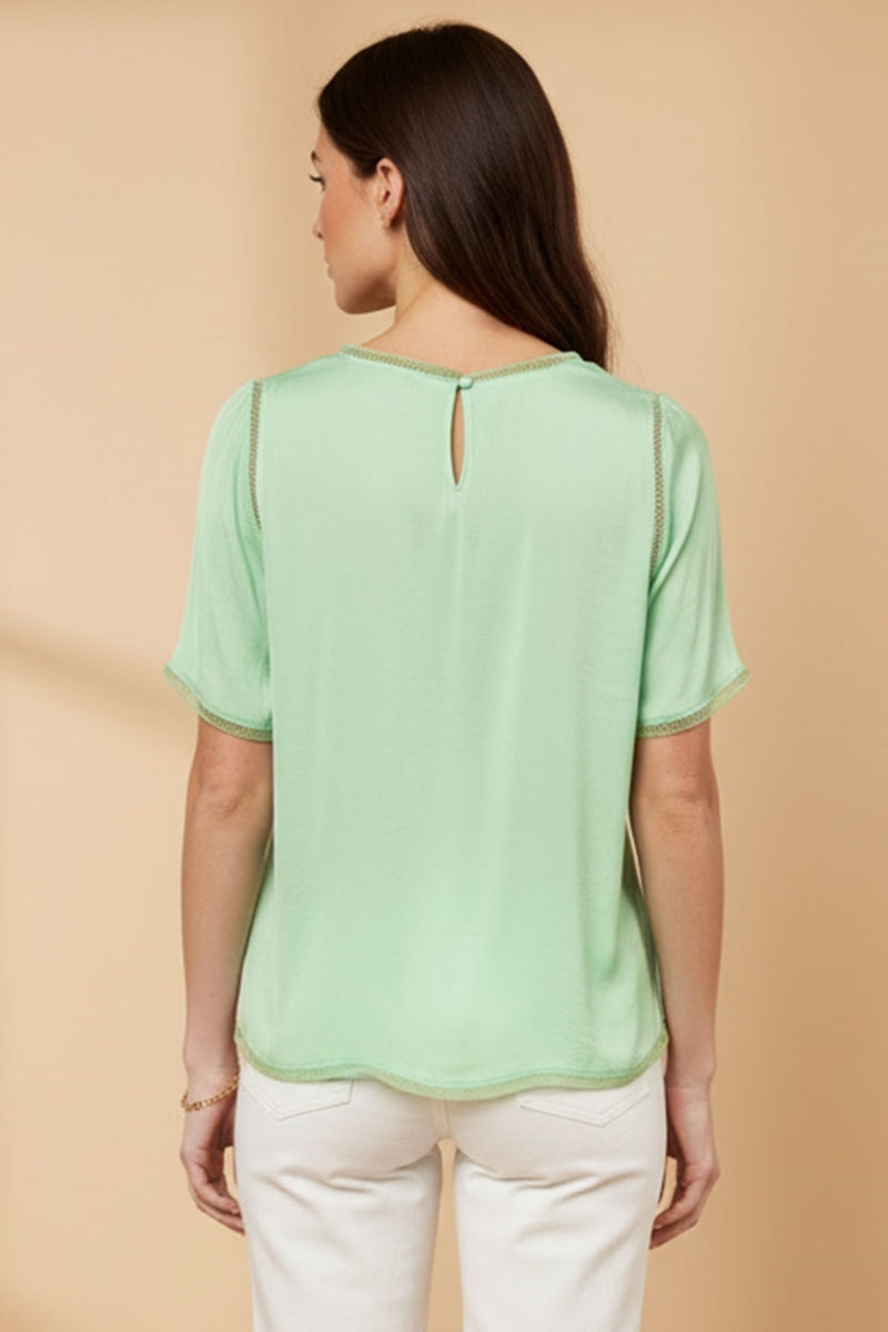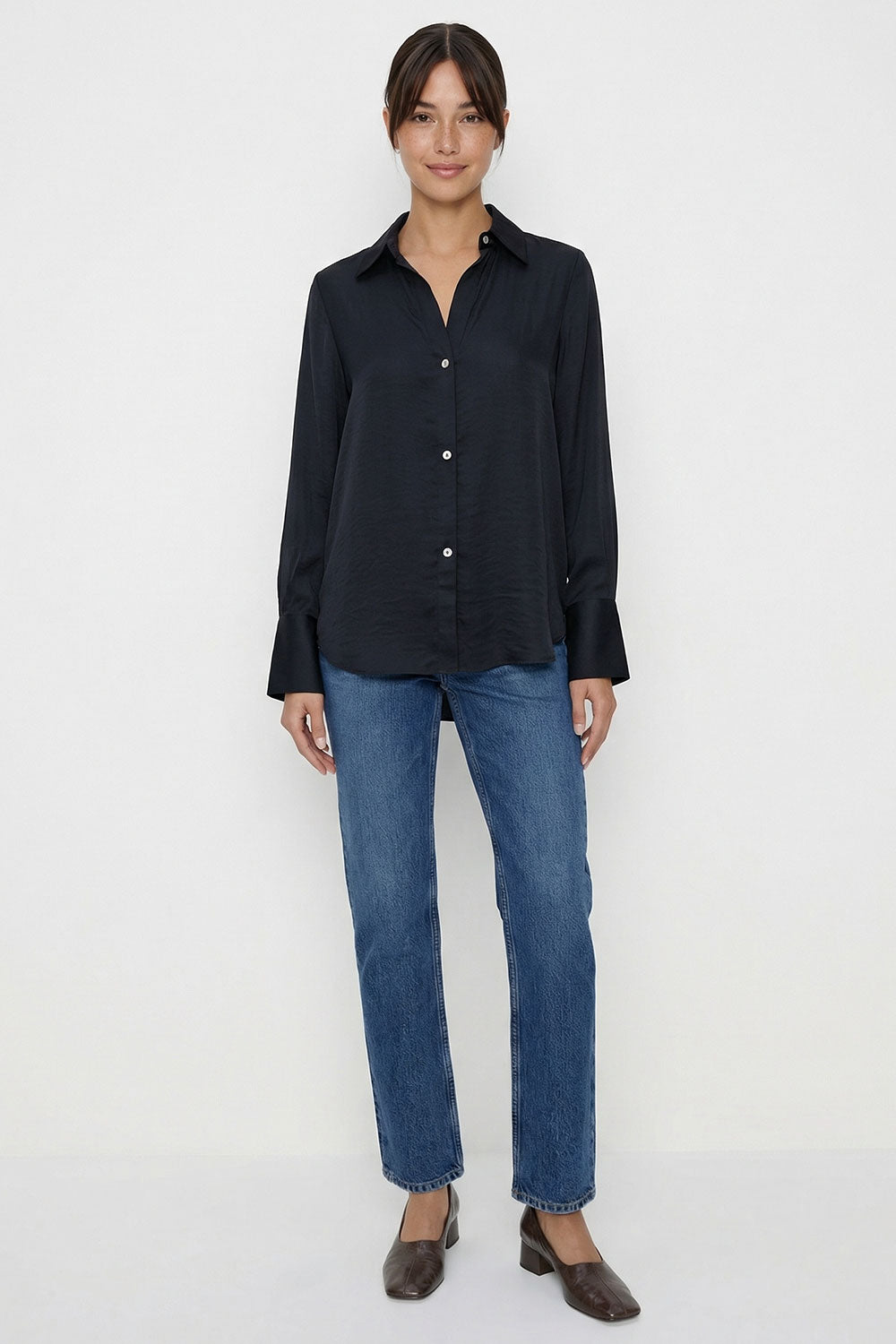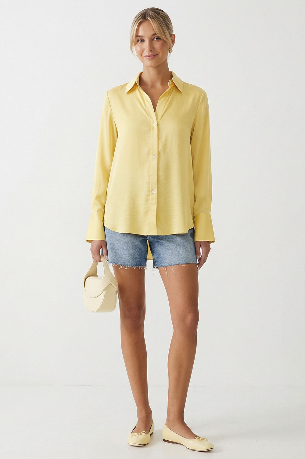 V-Neck Blouse With Bands Sleeve in Crinkle Satin