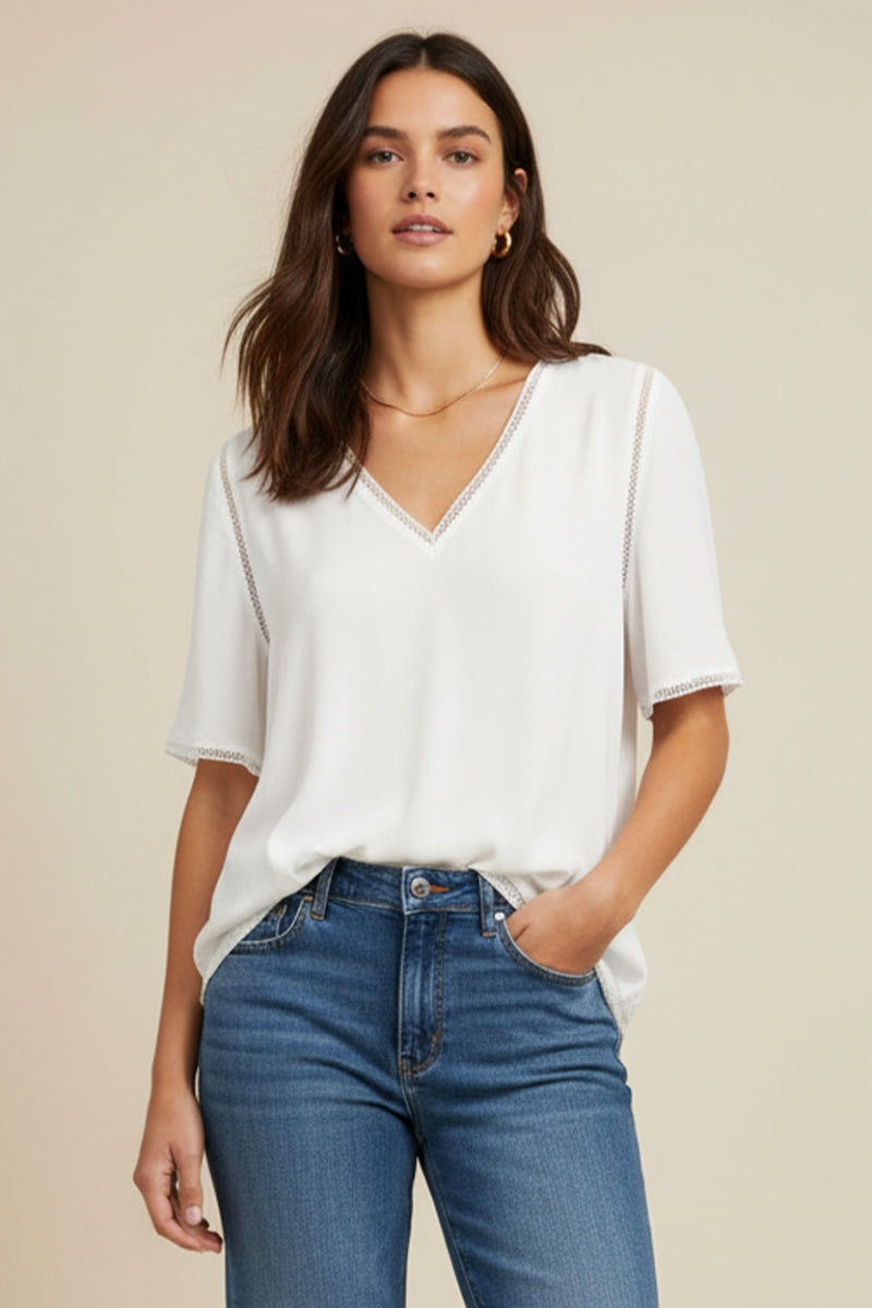 Half Sleeve Hi-lo Bubble Hem Blouse