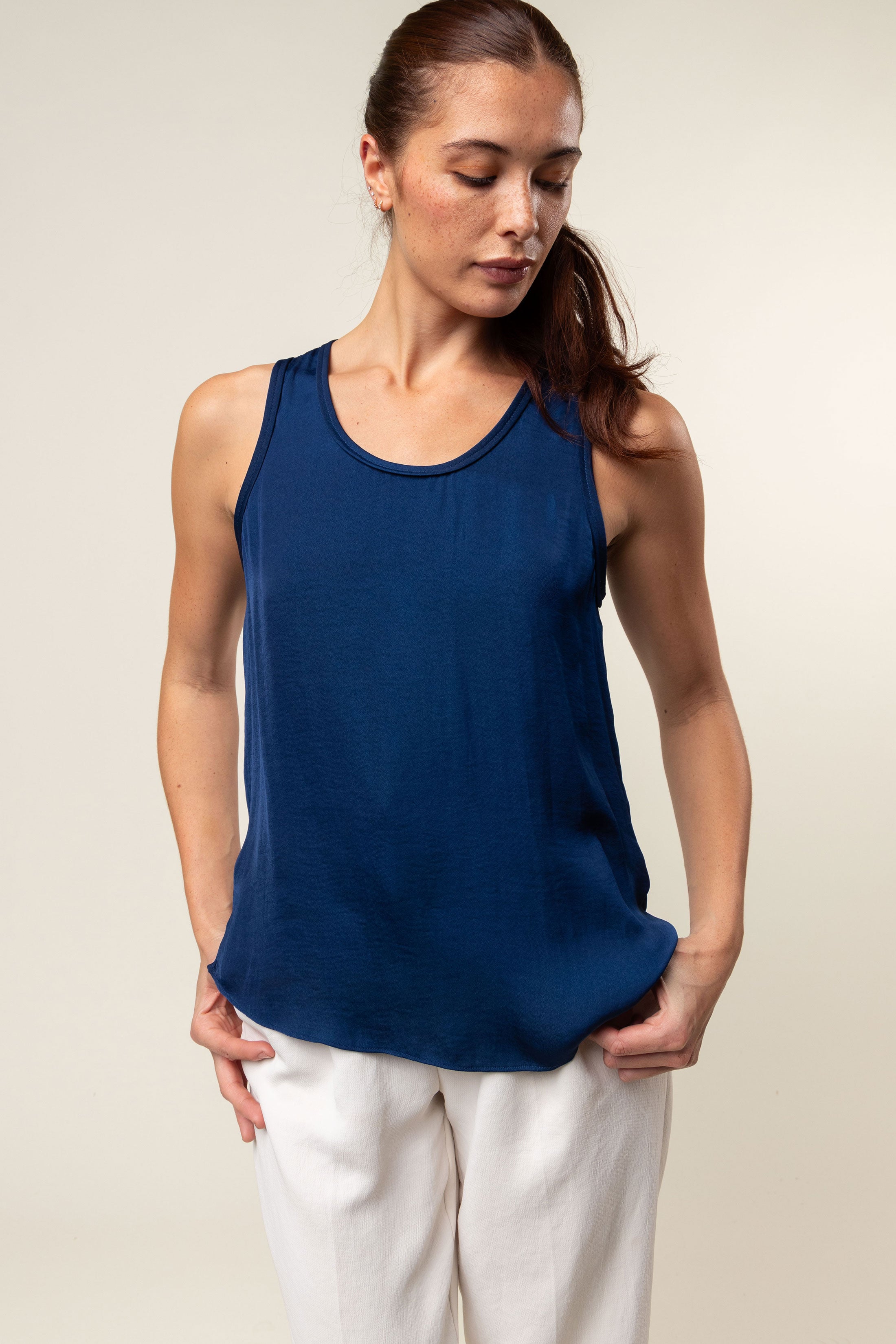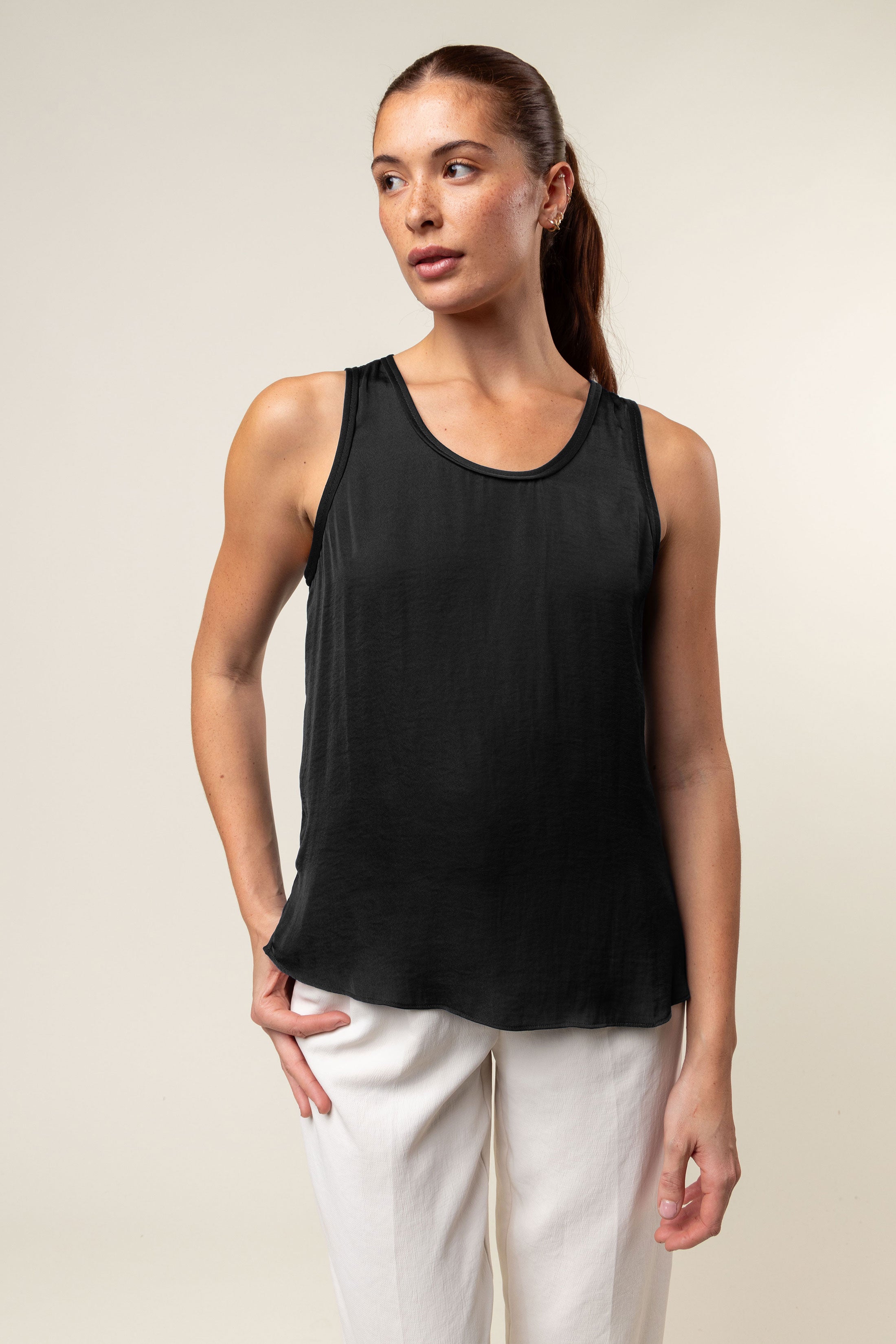 Scoop Neck Satin Tank Top - SS