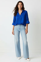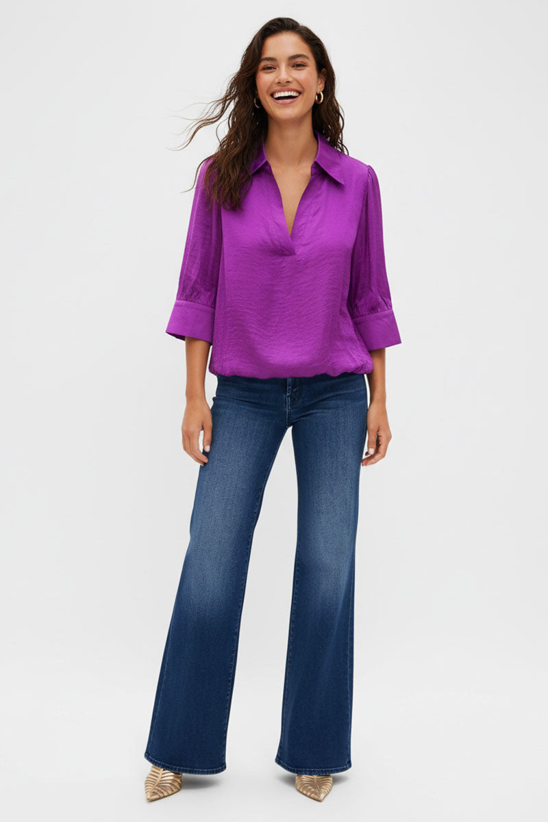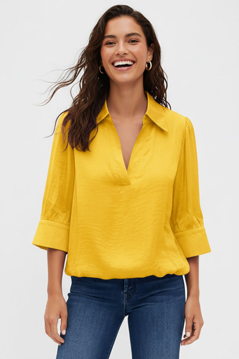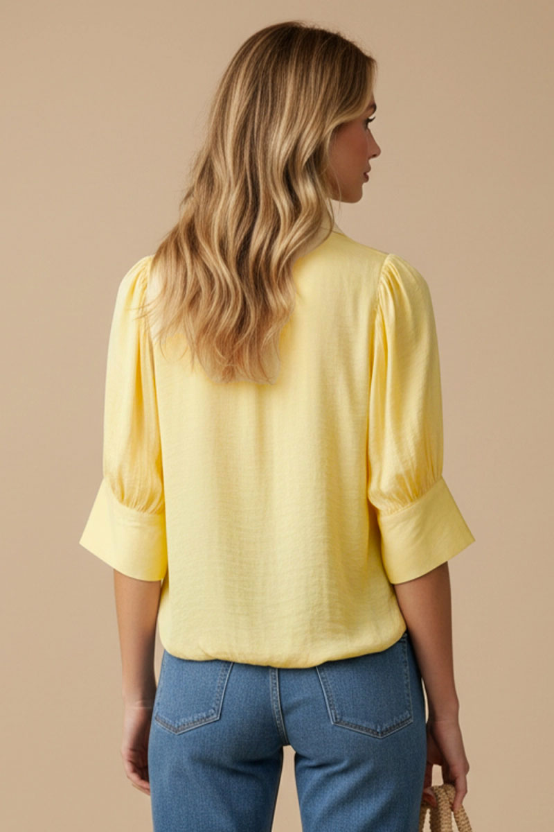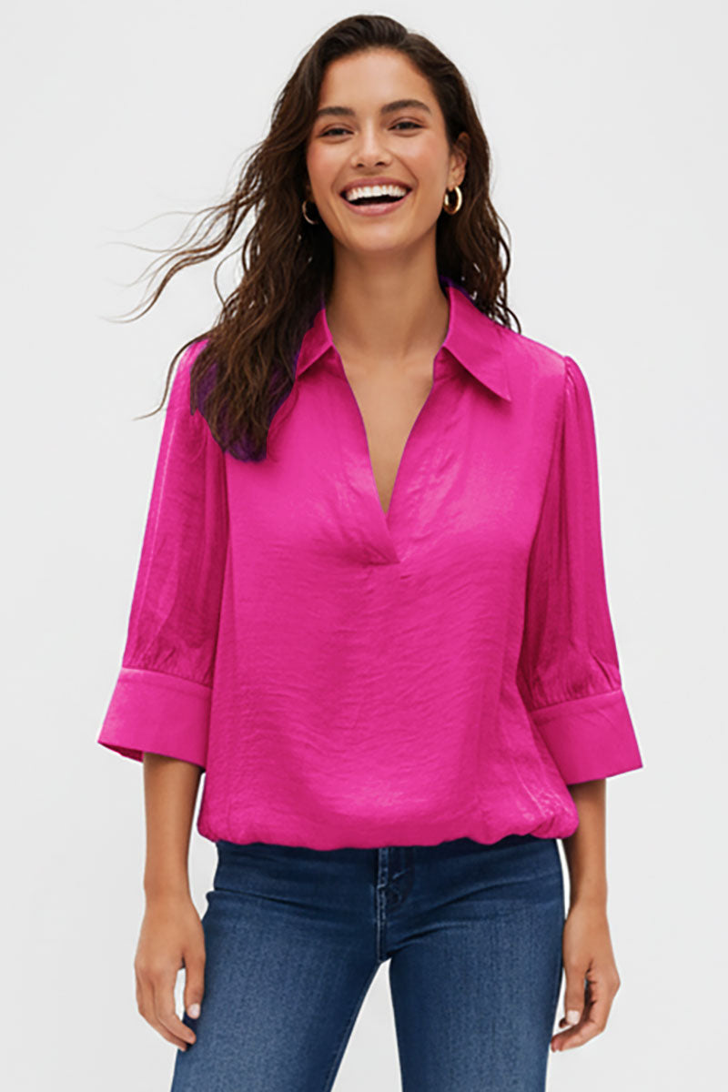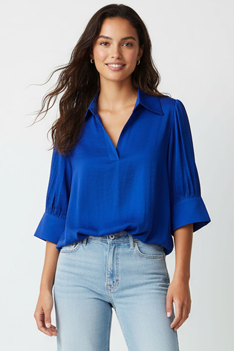 Half Sleeve Hi-lo Bubble Hem Blouse