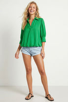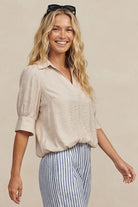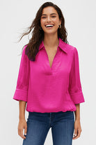 ╴Women's Half Sleeve Hi-Lo Bubble Hem Blouse