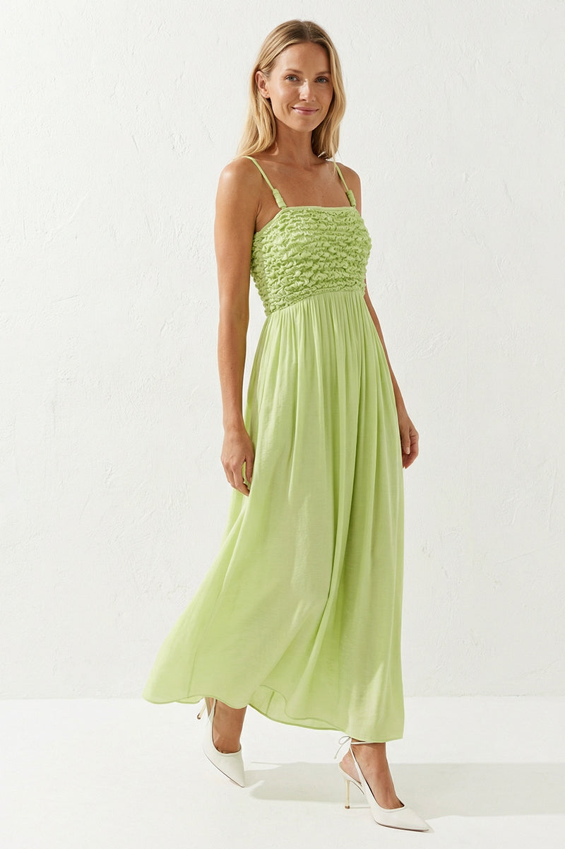 Smocked Maxi Dress With Cord Strap Detail