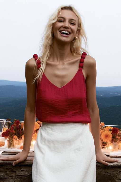 Classic V-neck Tank Top With Strap Accent