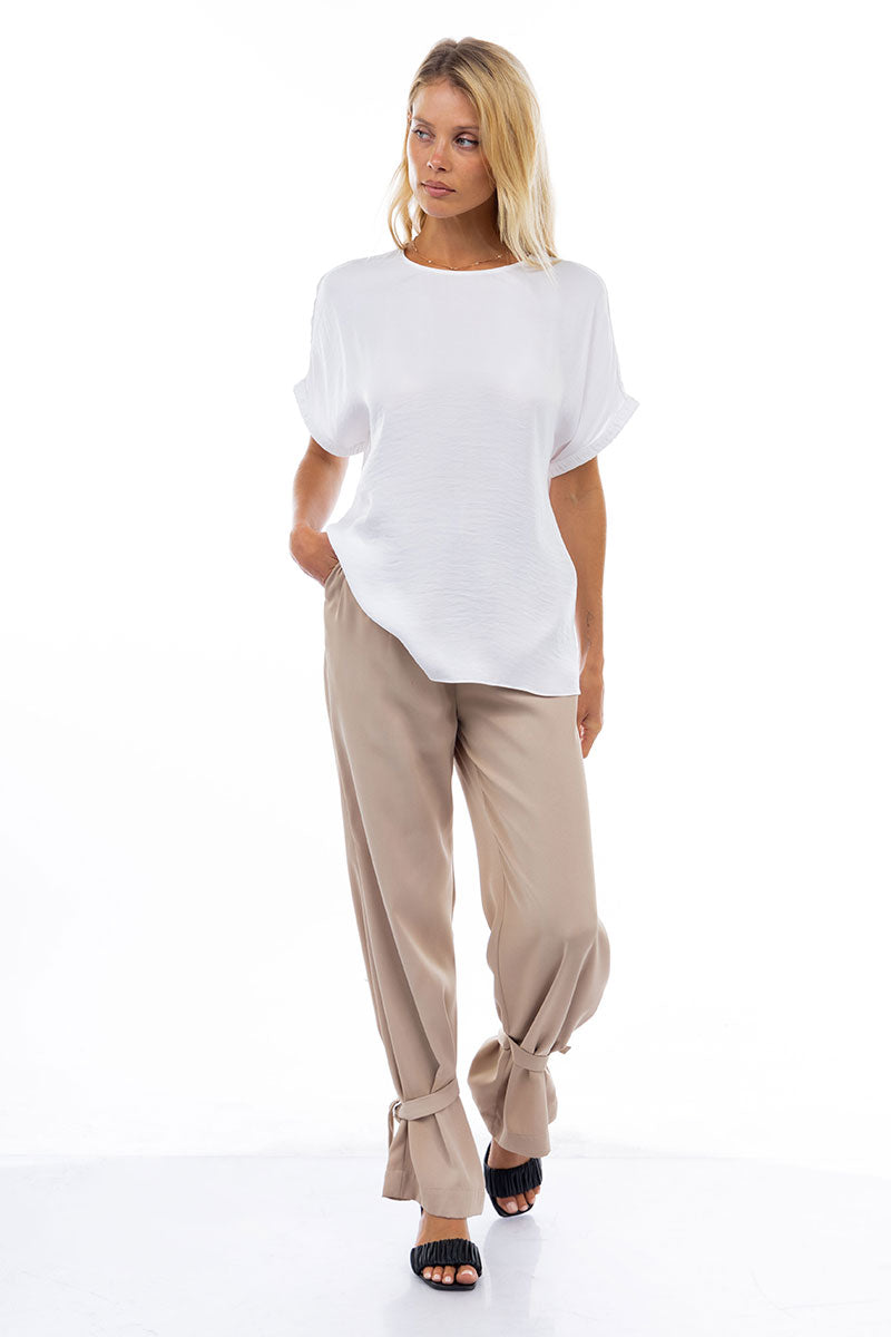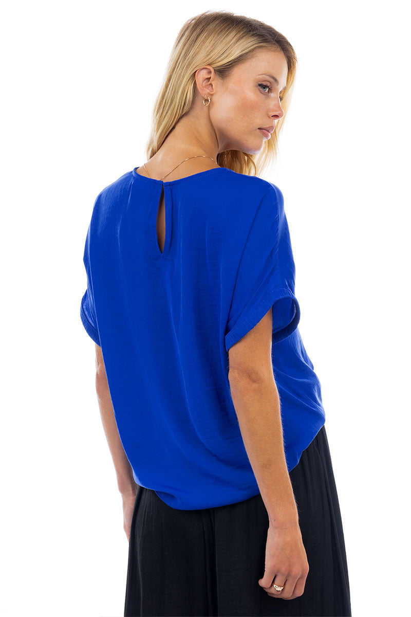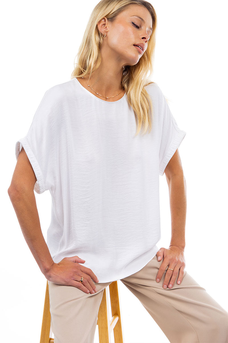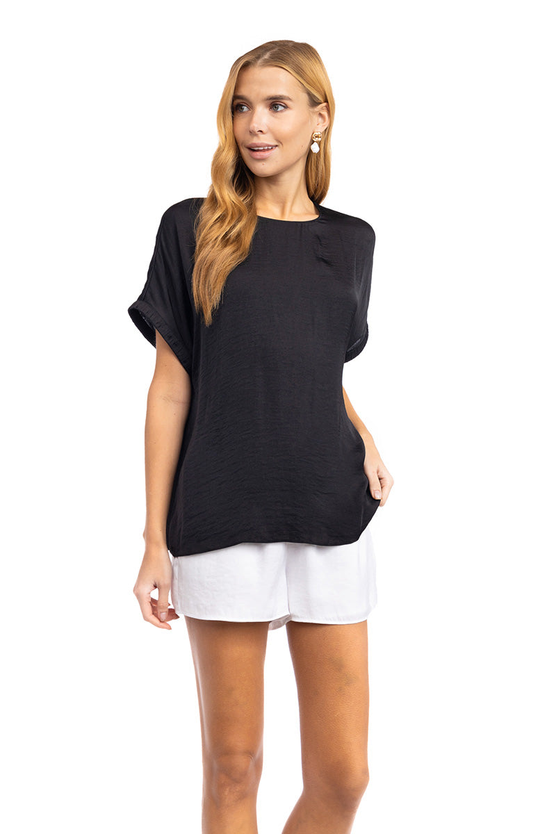 The standout feature of this blouse is the plisse texture on the sleeves, offering a subtle yet eye-catching twist on a classic silhouette. For a night out, pair this blouse with a sleek pencil skirt or leather pants. Add statement earrings and strappy heels to turn heads.