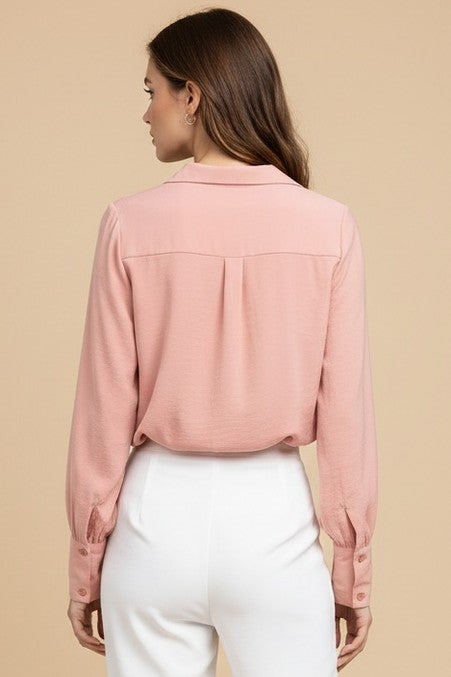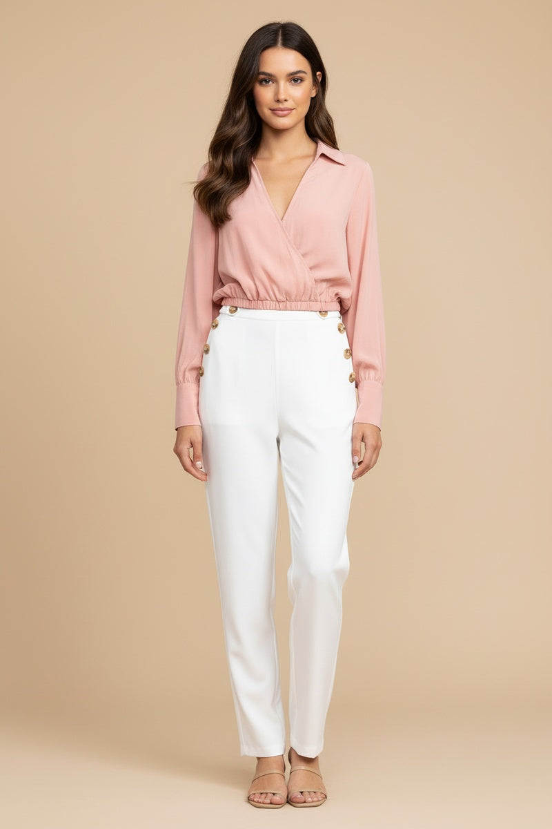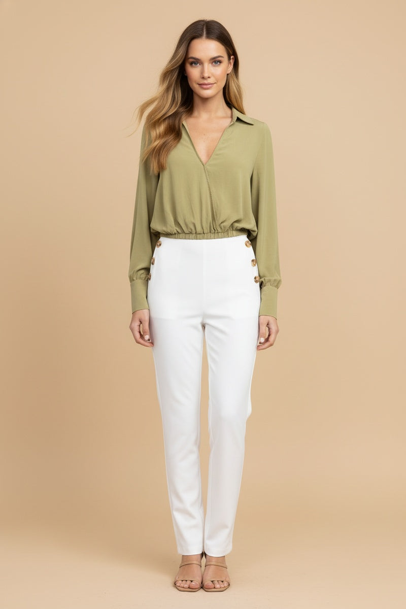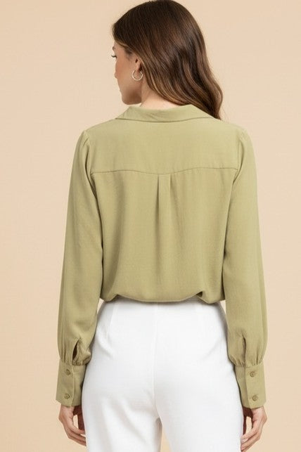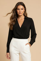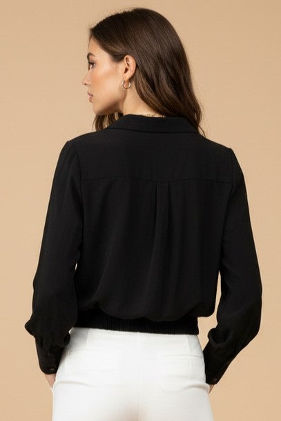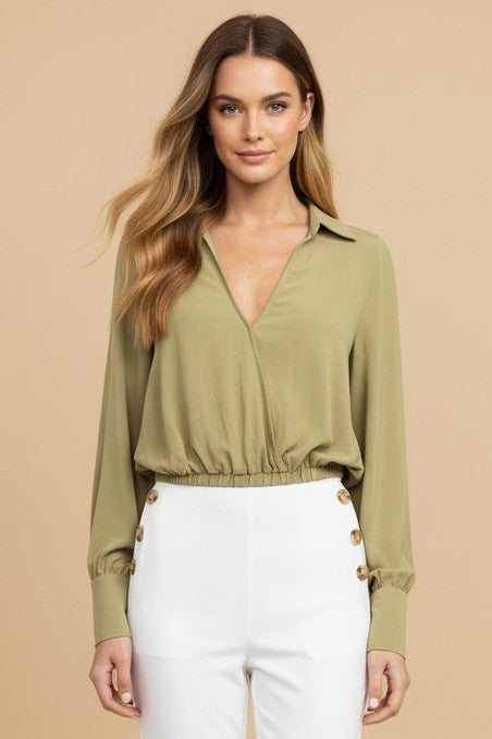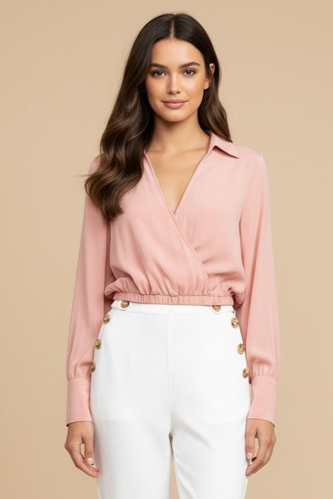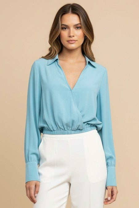 Long Sleeve Cropped Surplice Collared Blouse