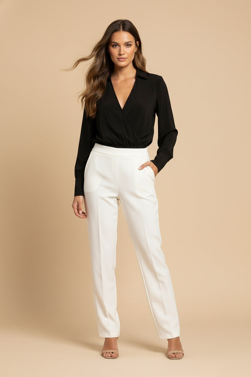 • Surplice collar for a chic and sophisticated neckline.