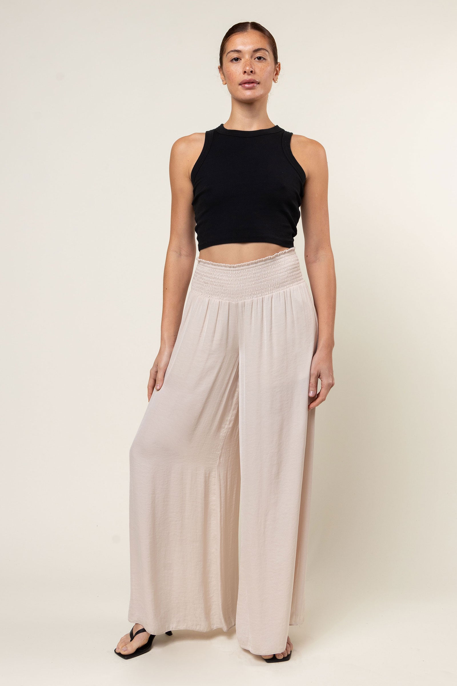 Soft, silky fabric with a flattering wide-leg fit for a relaxed, comfortable silhouette.