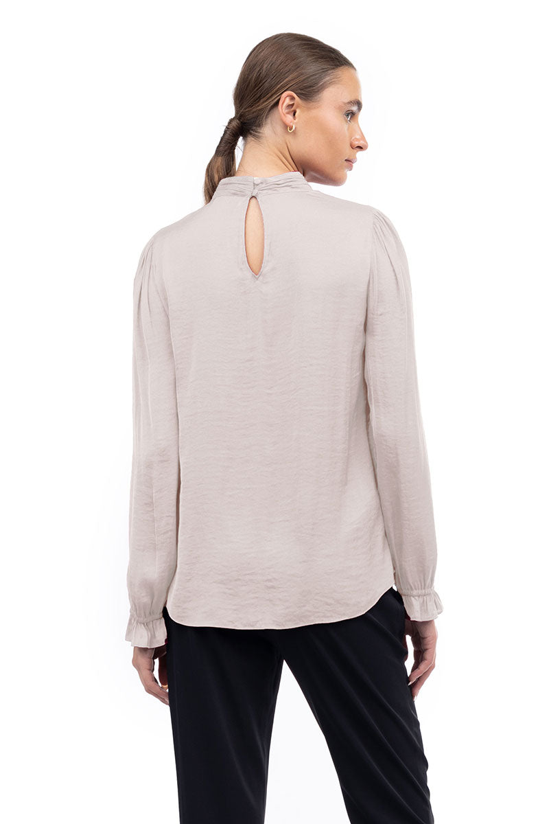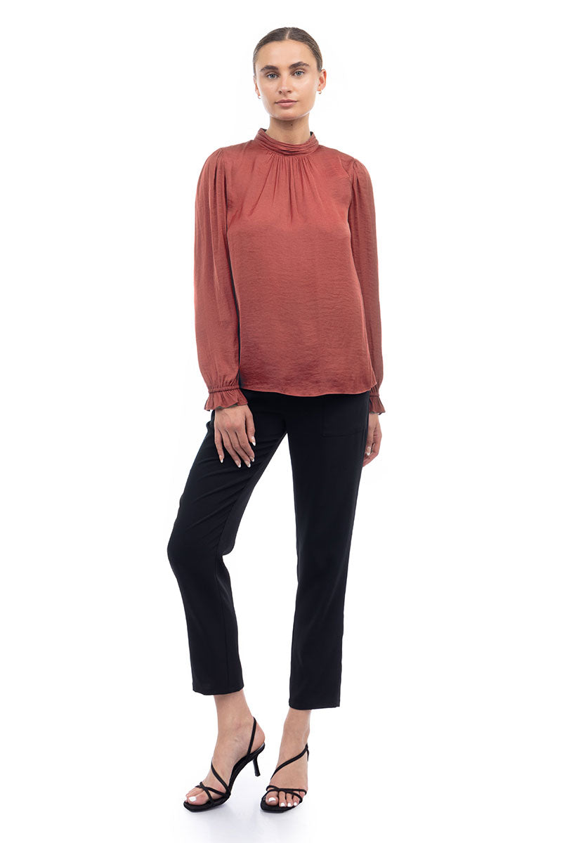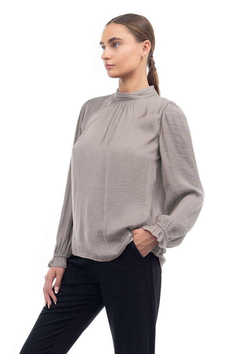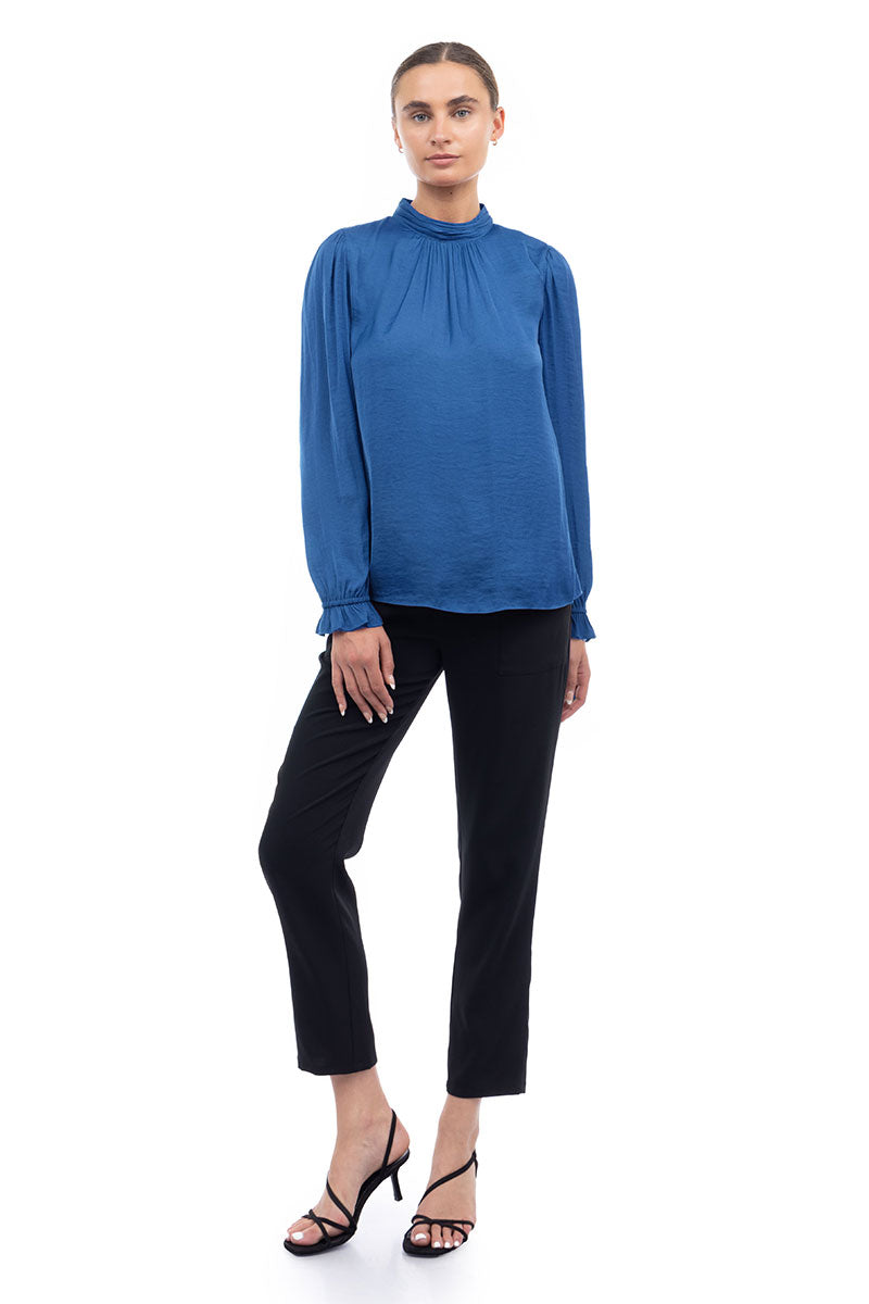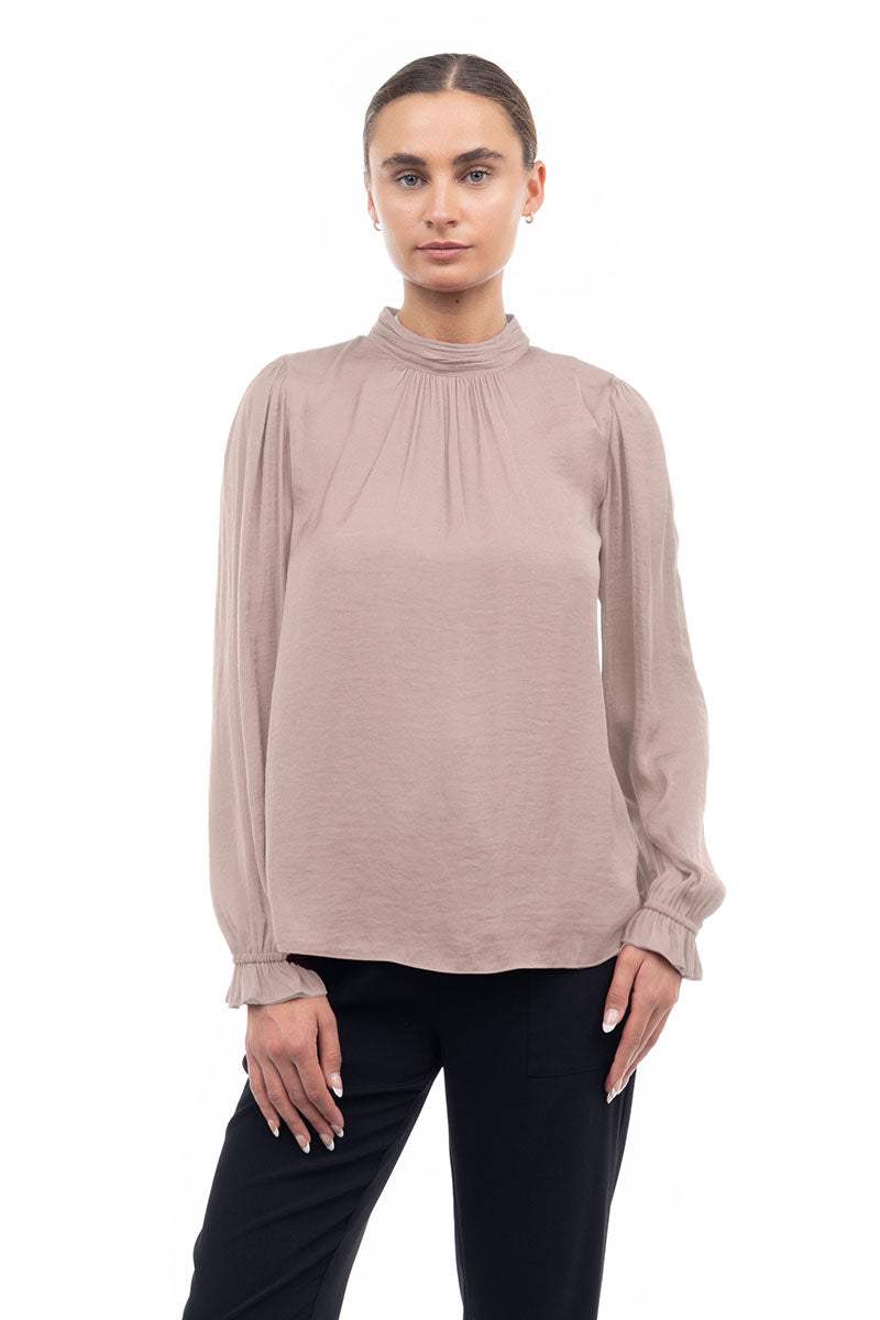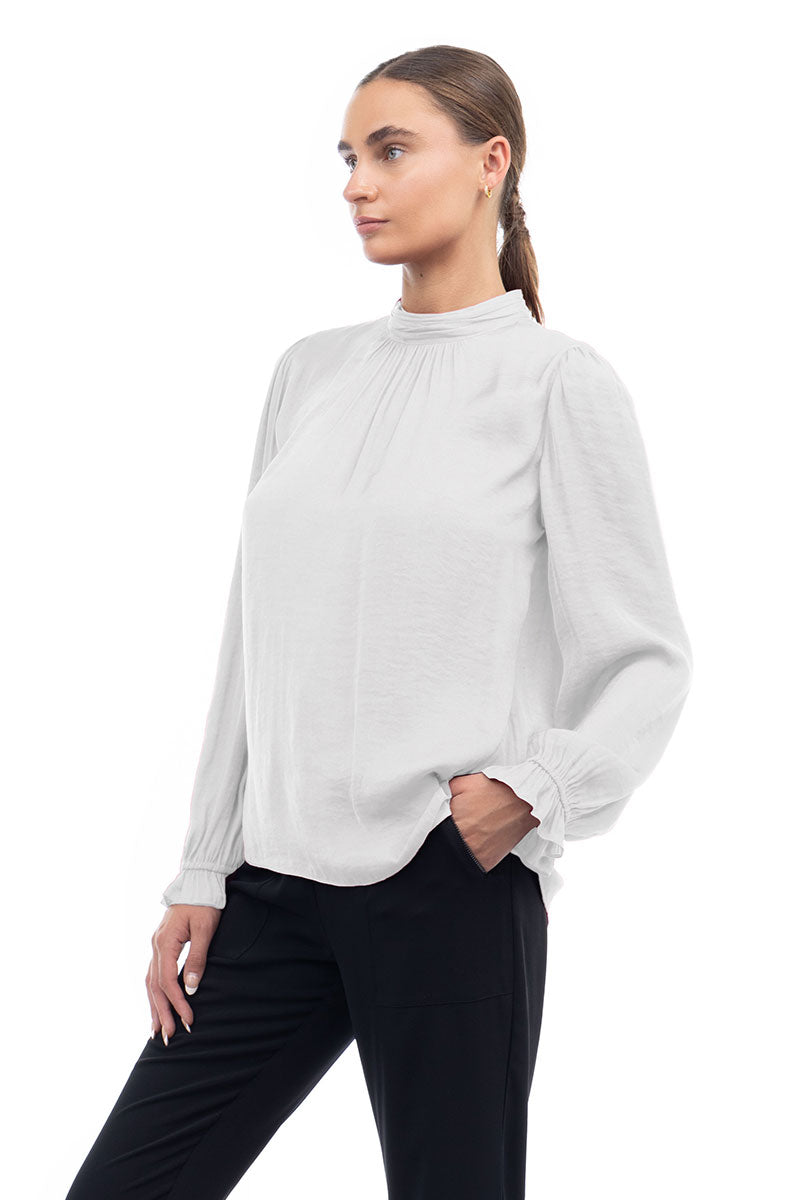 Mock Neck Long Sleeve Blouse With Smocking Cuff Detail