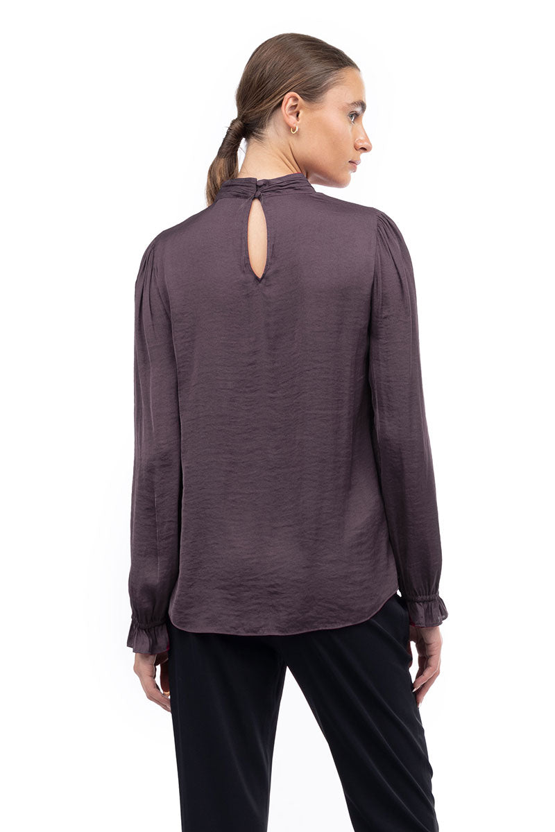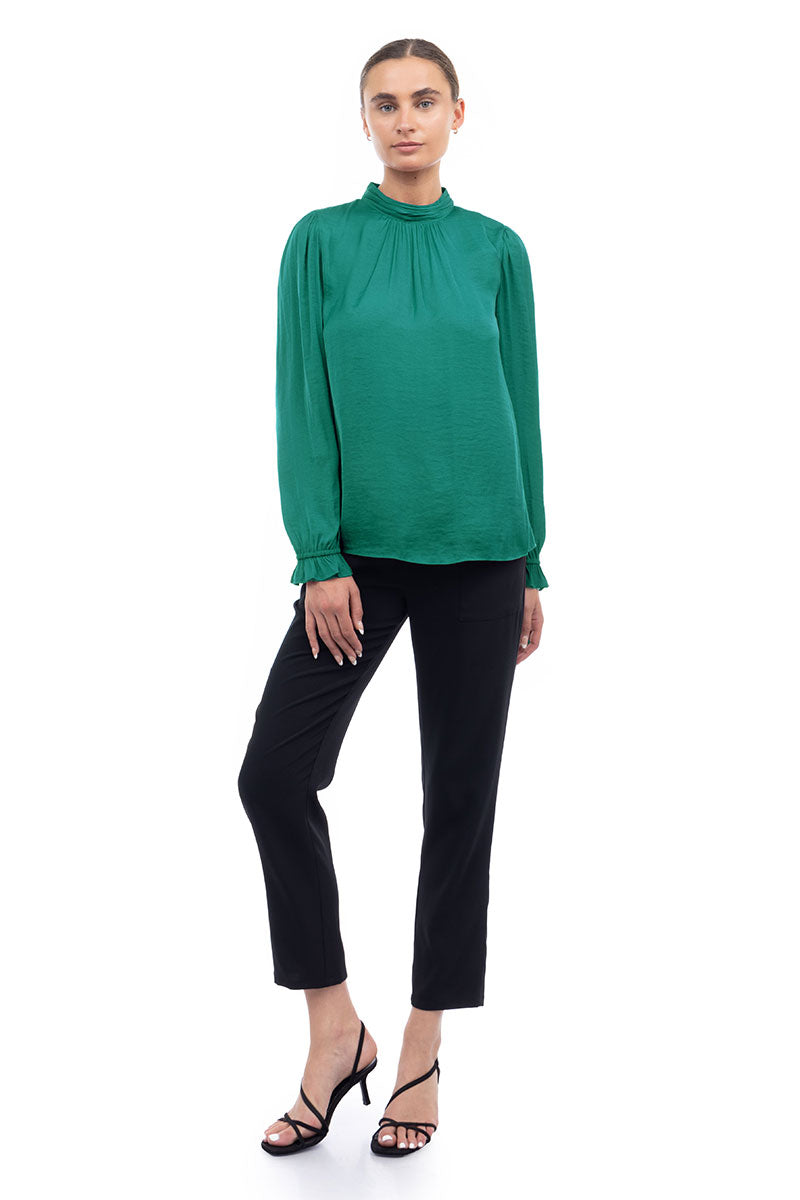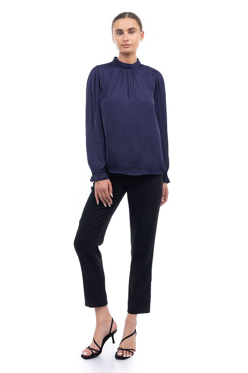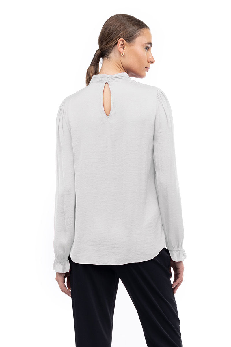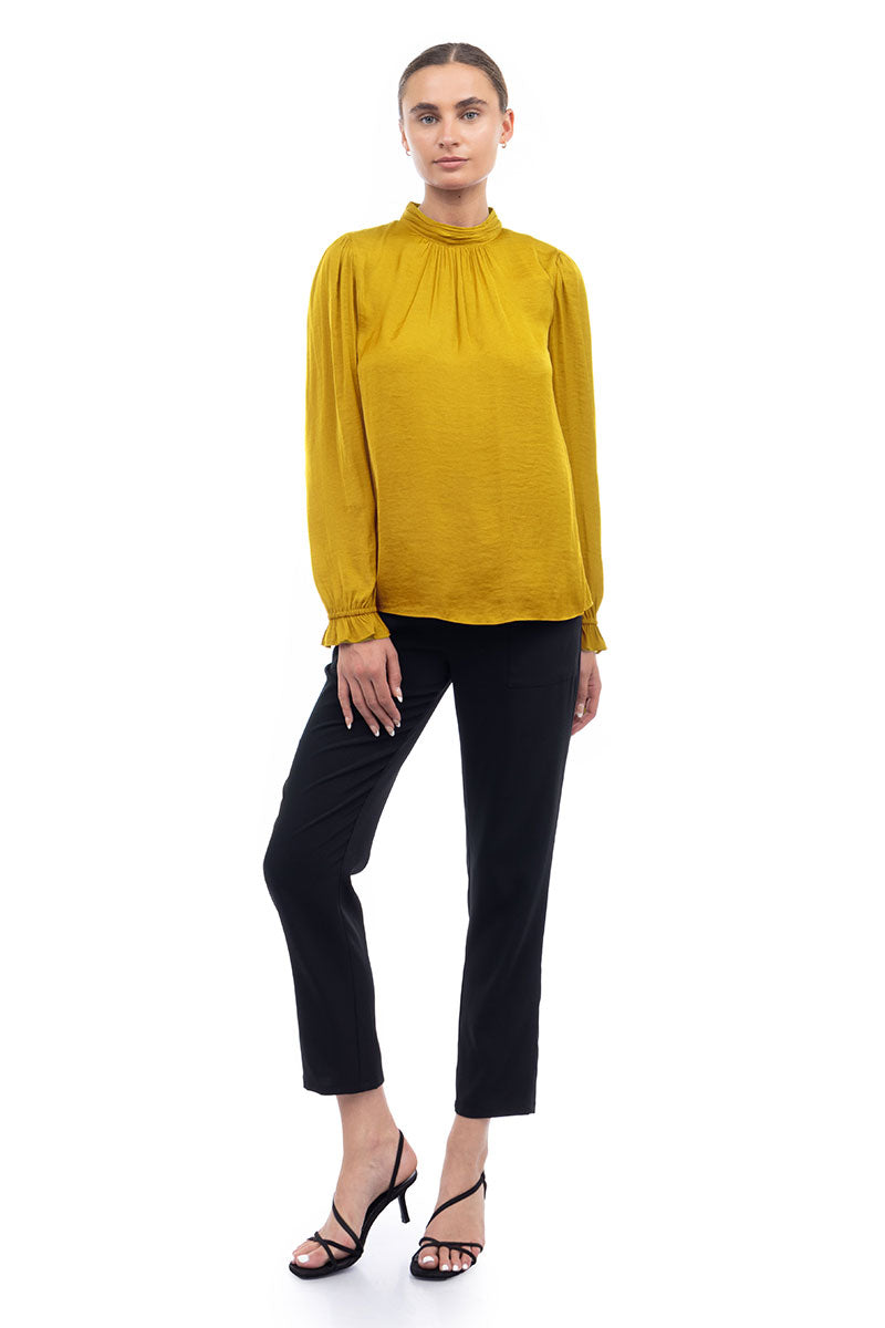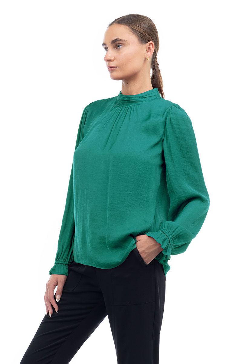 Mock Neck Long Sleeve Blouse With Smocking Cuff Detail