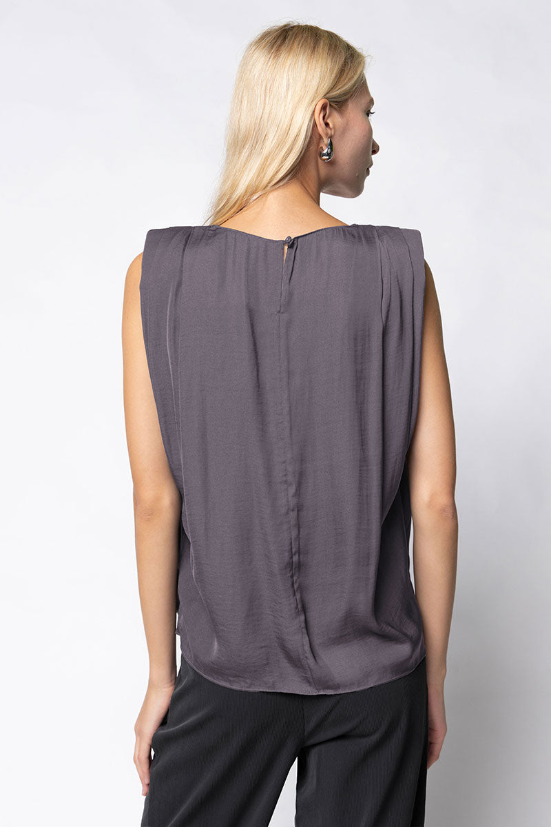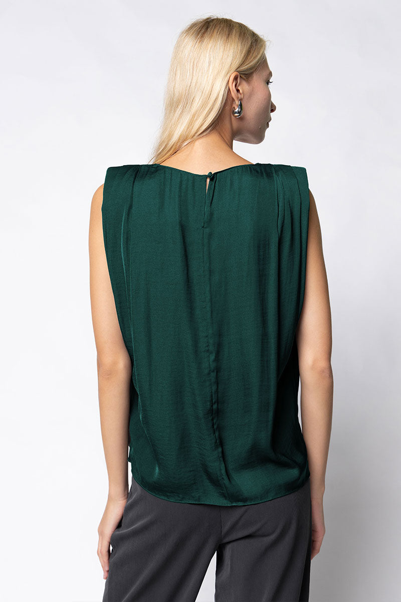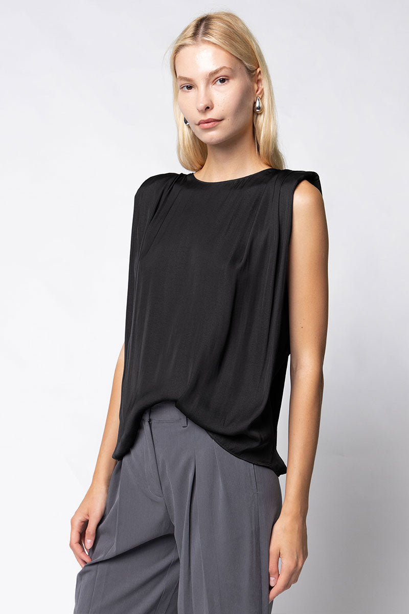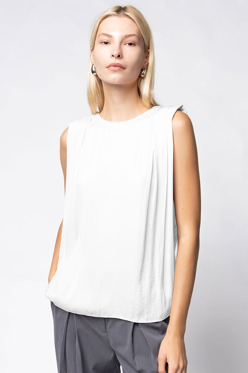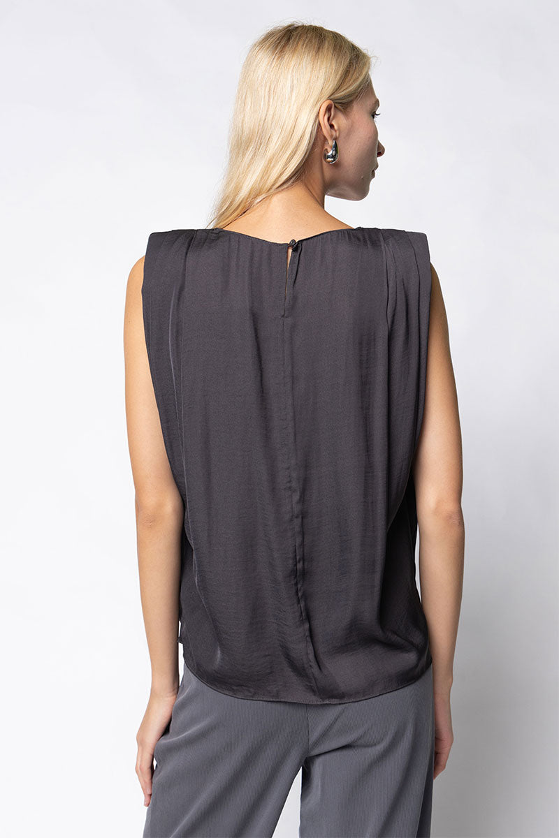 Upgrade your style with our Women's Padded Shoulder Tank, tailored from silky satin-like material. This sleeveless top blends comfort and sophistication, boasting padded shoulders for added structure and a chic silhouette, making it an essential addition to your wardrobe.