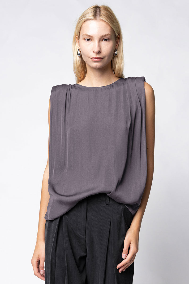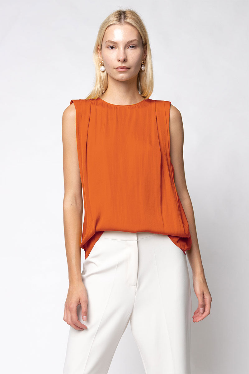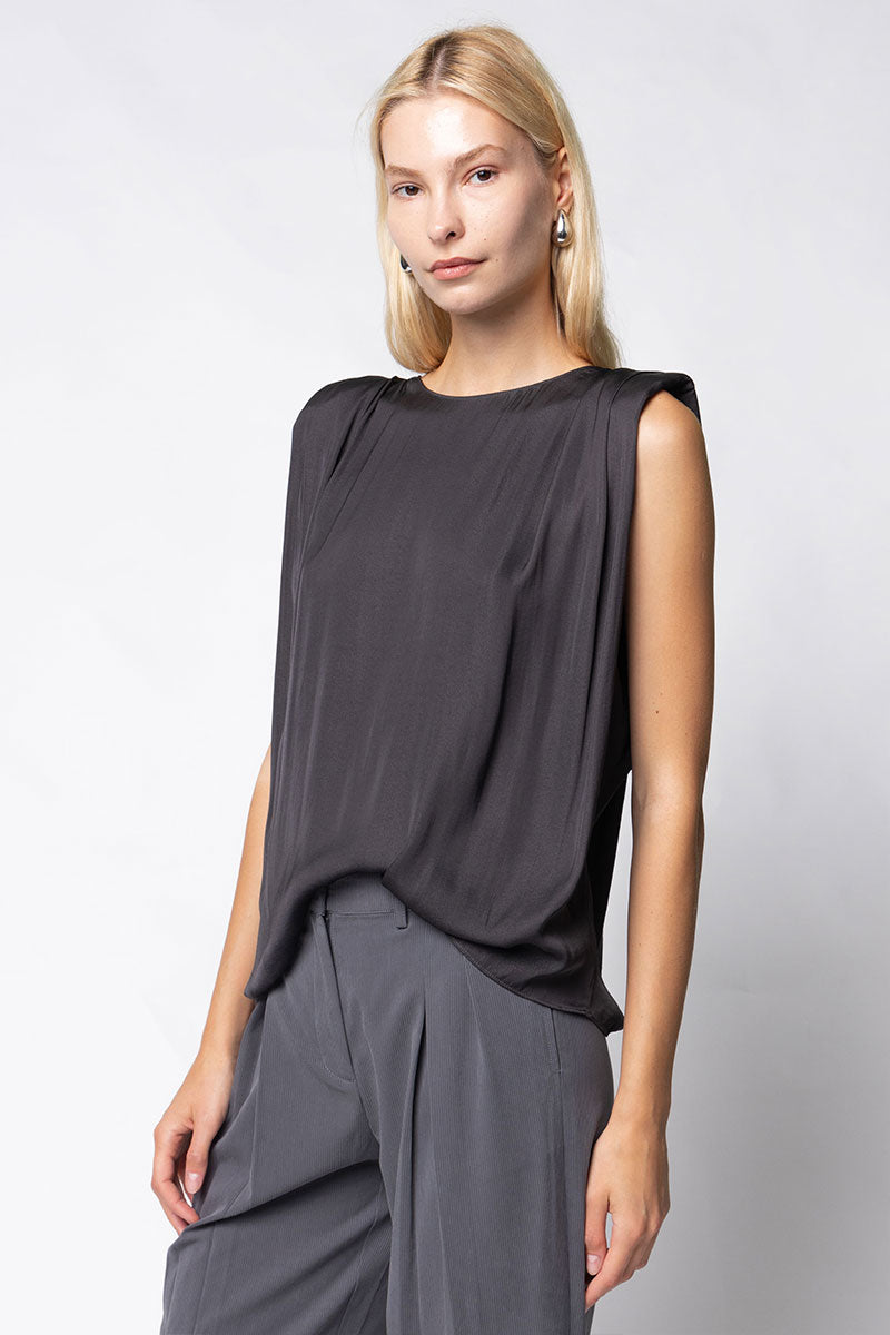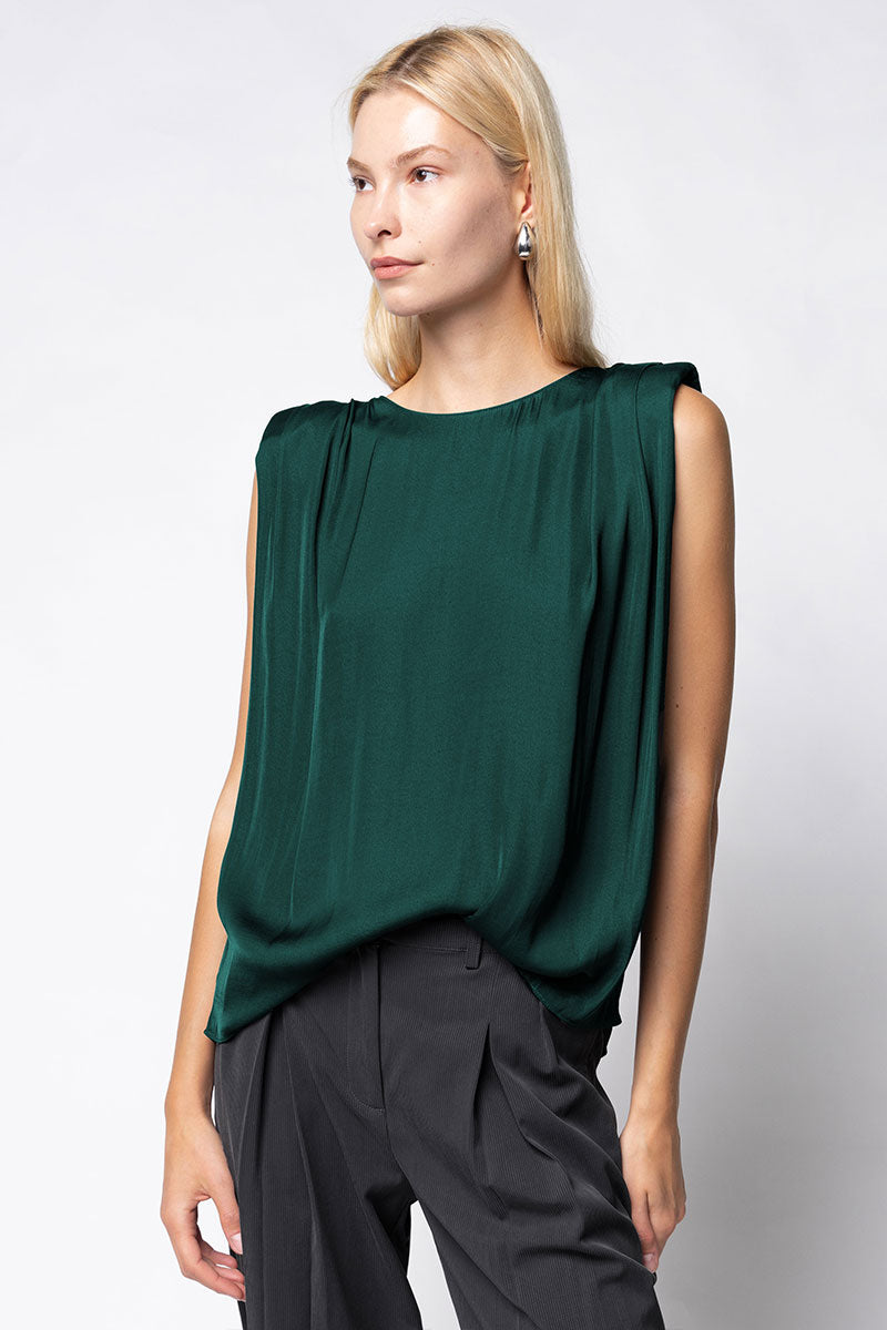 Upgrade your style with our Women's Padded Shoulder Tank, tailored from silky satin-like material. This sleeveless top blends comfort and sophistication, boasting padded shoulders for added structure and a chic silhouette, making it an essential addition to your wardrobe.
