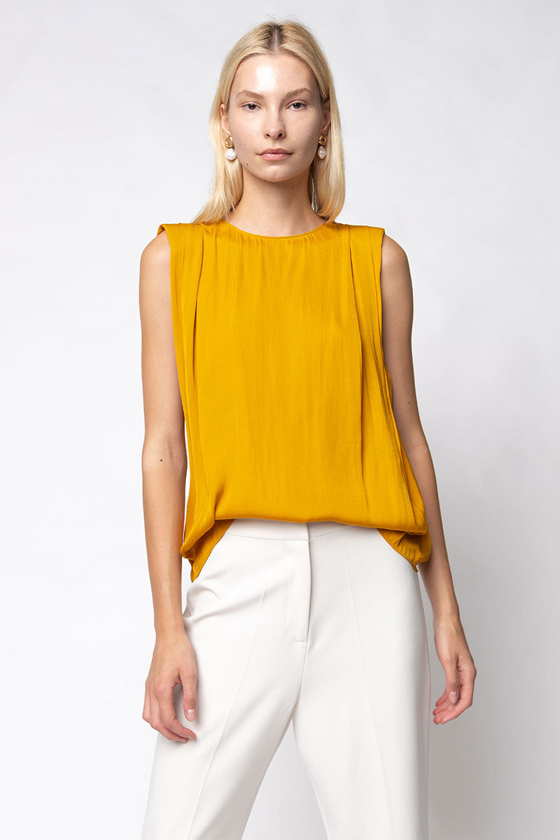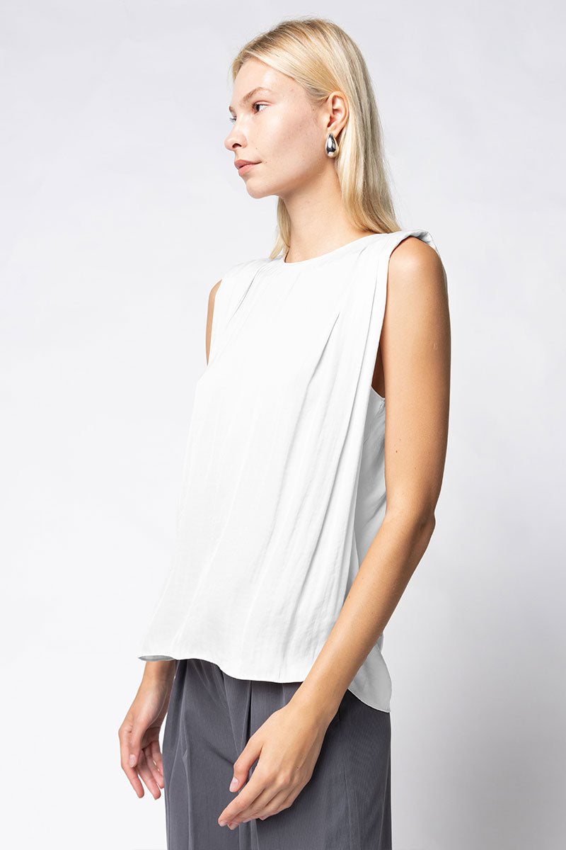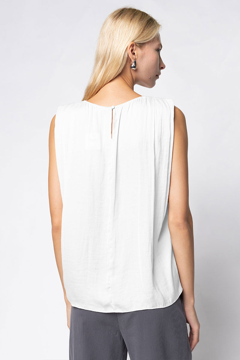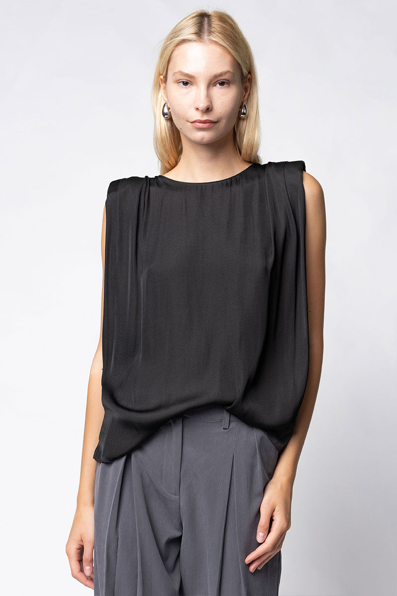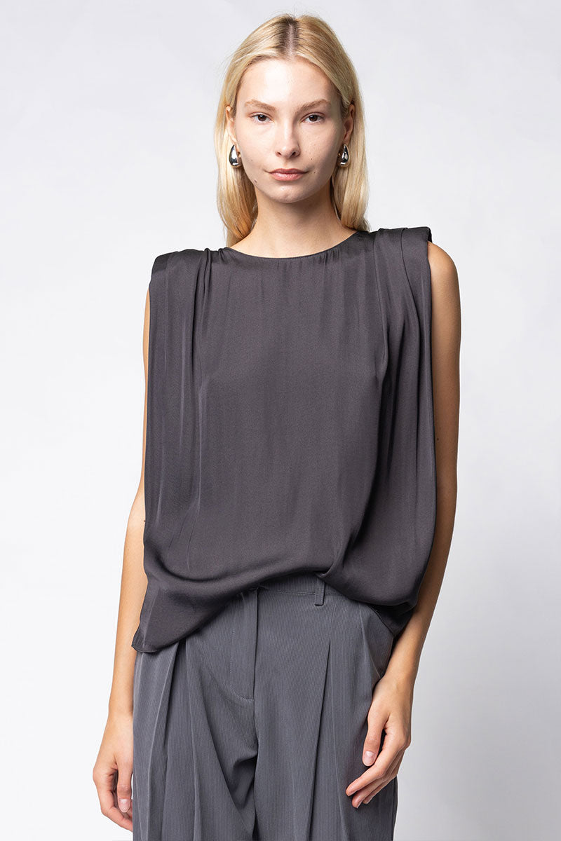 Upgrade your style with our Women's Padded Shoulder Tank, tailored from silky satin-like material. This sleeveless top blends comfort and sophistication, boasting padded shoulders for added structure and a chic silhouette, making it an essential addition to your wardrobe.