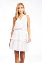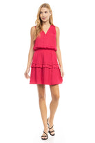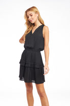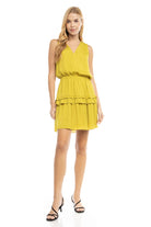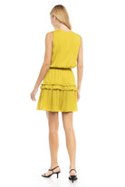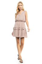 Elevate your look with our Sleeveless Pleated V-Neck Ruffle Dress, featuring a fitted elastic waist for a flattering and customizable silhouette. The pleated detailing adds texture and sophistication, while the V-neck and ruffle accents provide a touch of femininity. Perfect for a trendy and comfortable ensemble, this mini dress effortlessly combines fashion and ease, making it an ideal choice for various occasions.