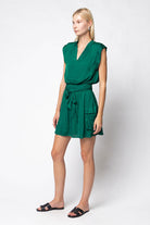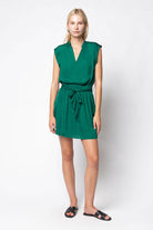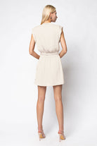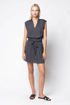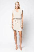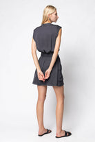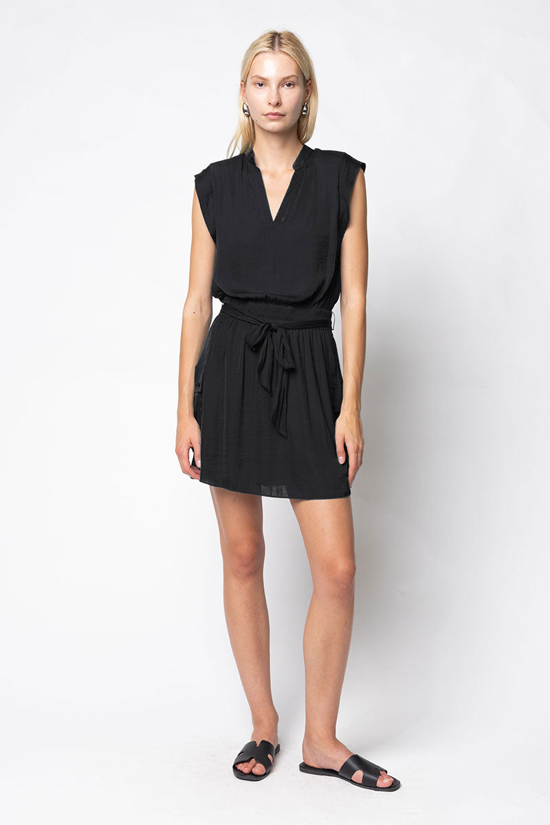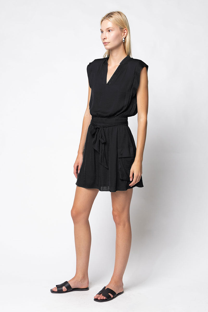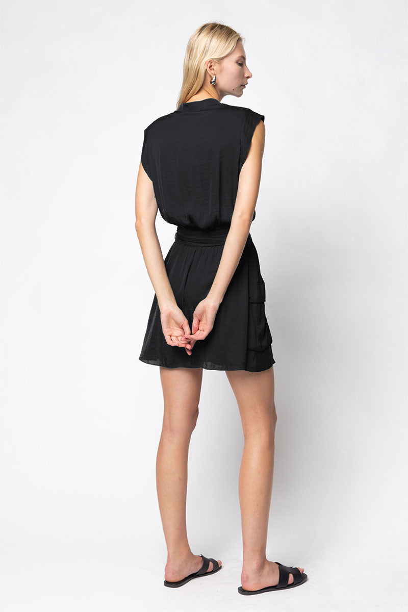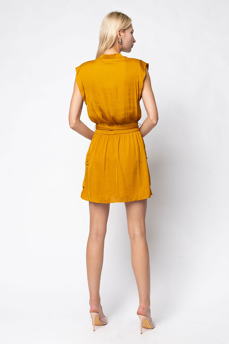 V-neck Mini Dress With Elastic Waist And Cargo Pockets