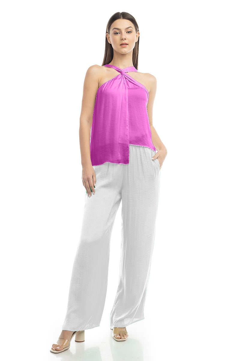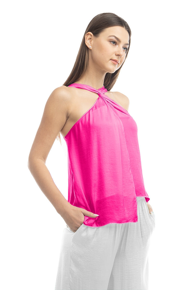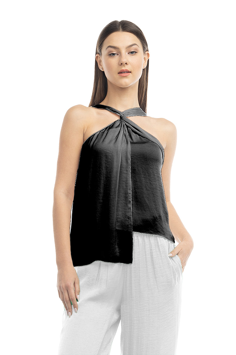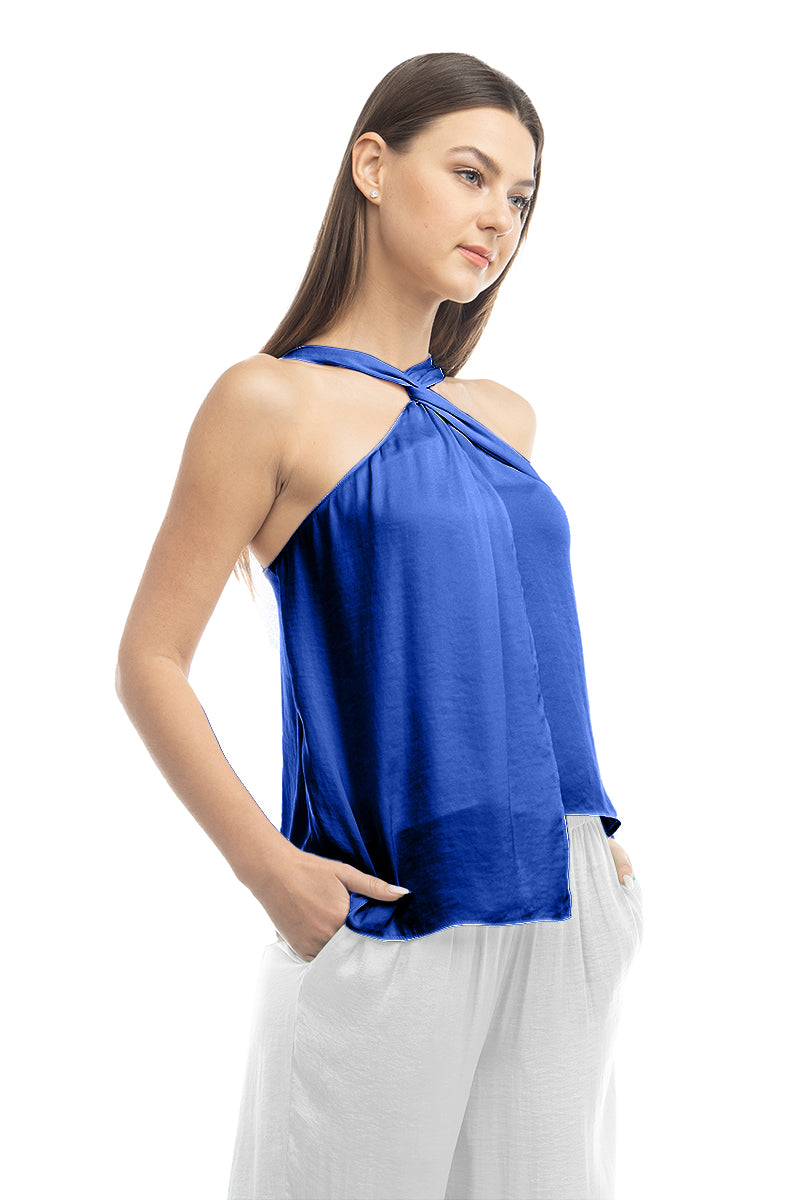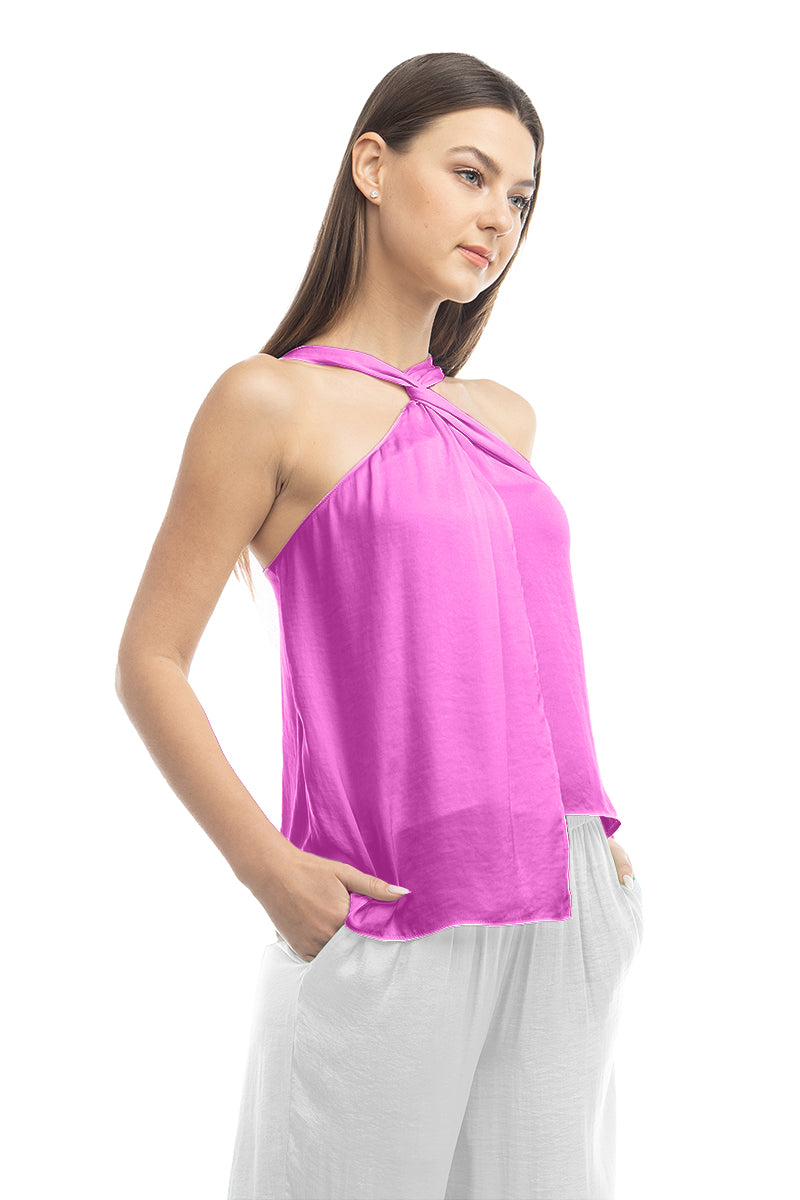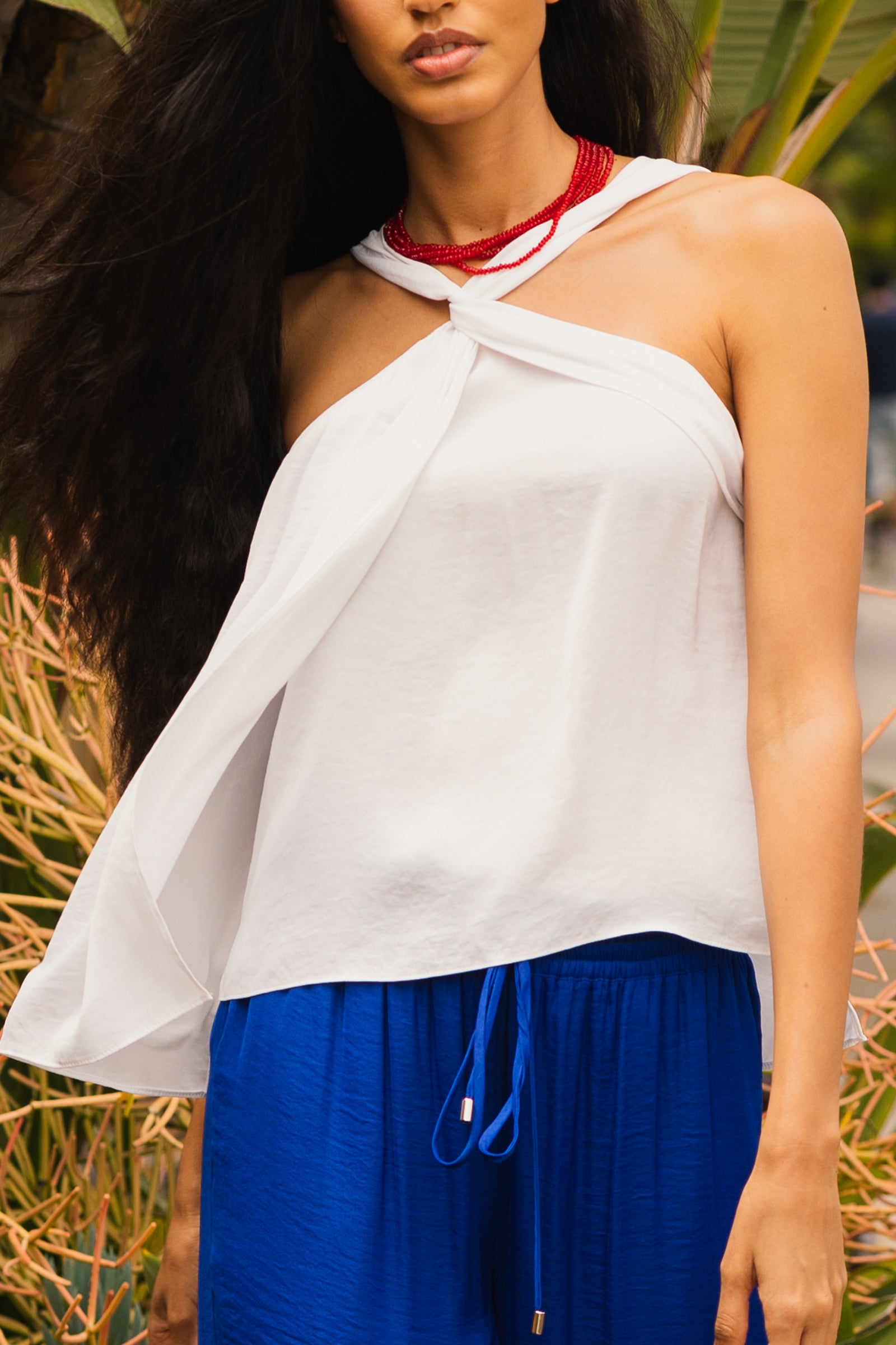 Sleeveless Asymmetrical Shoulder Top With Ties