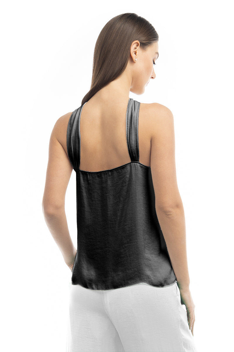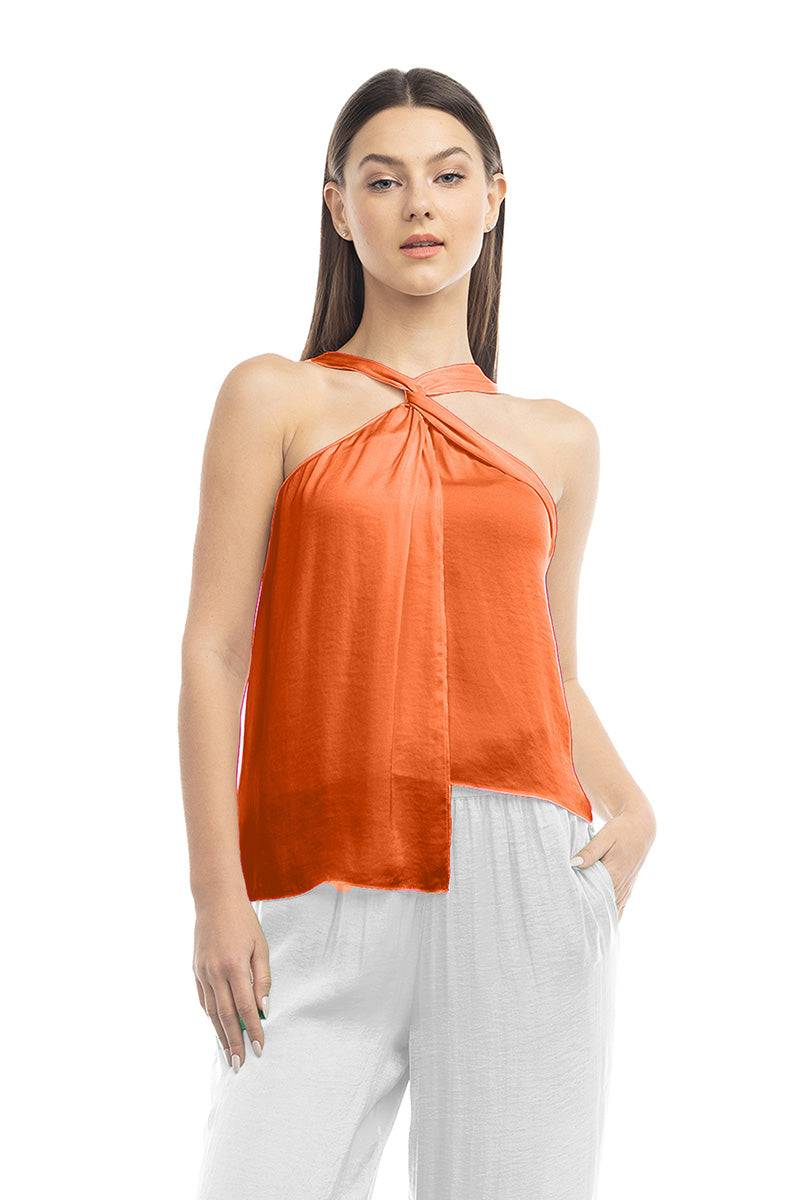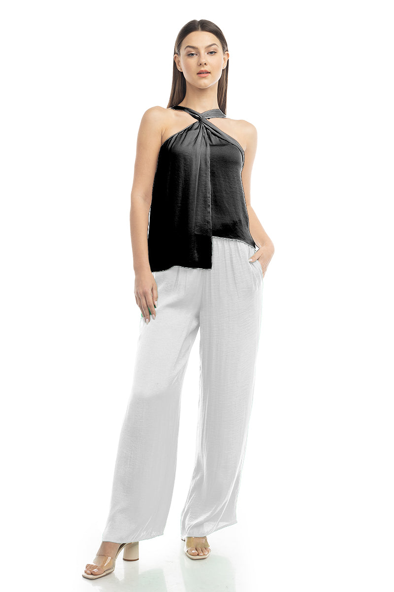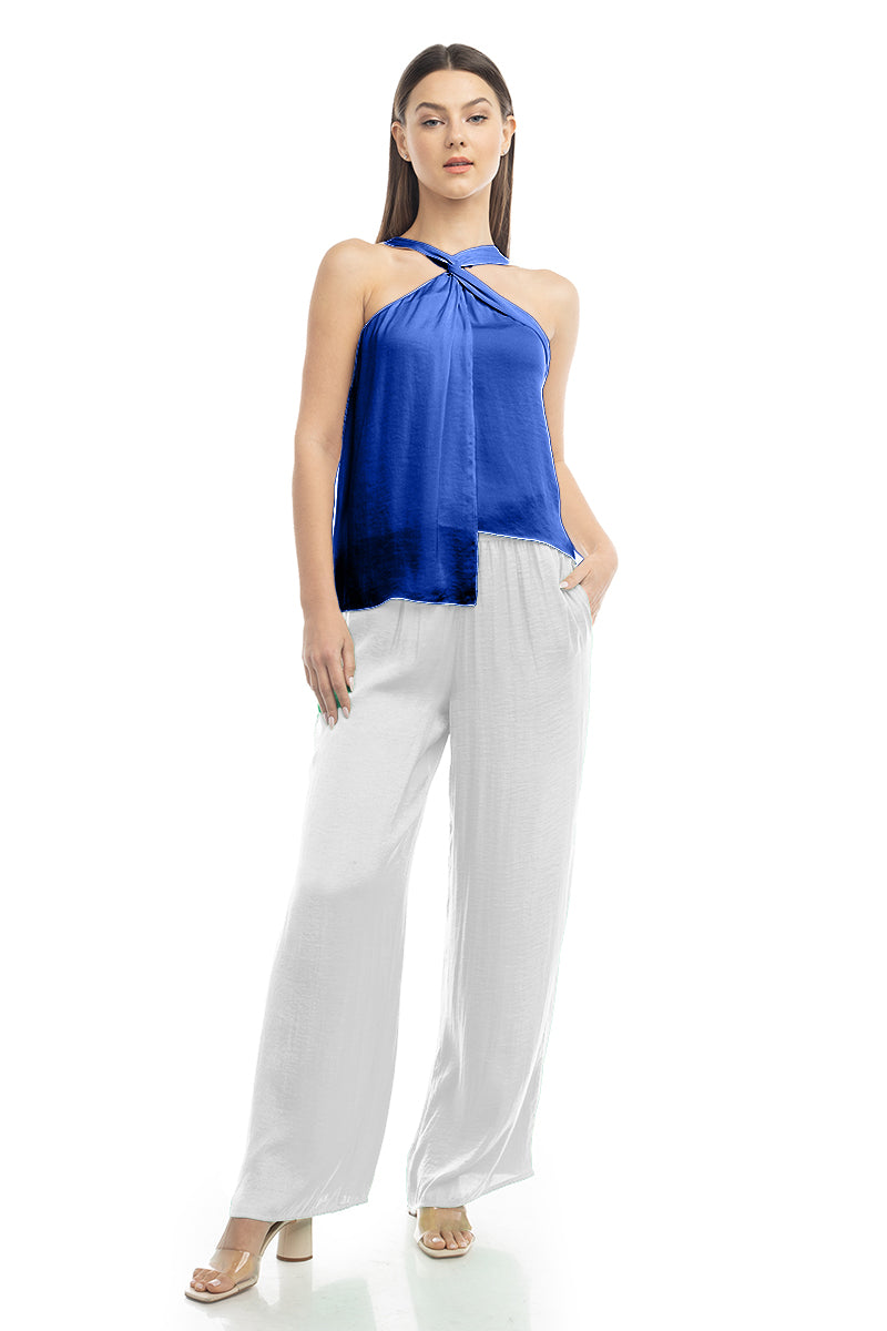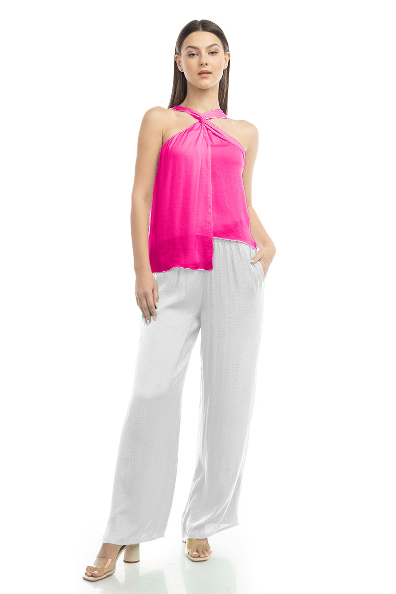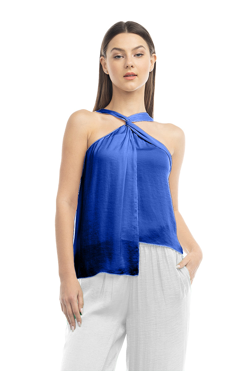 Sleeveless Asymmetrical Shoulder Top With Ties