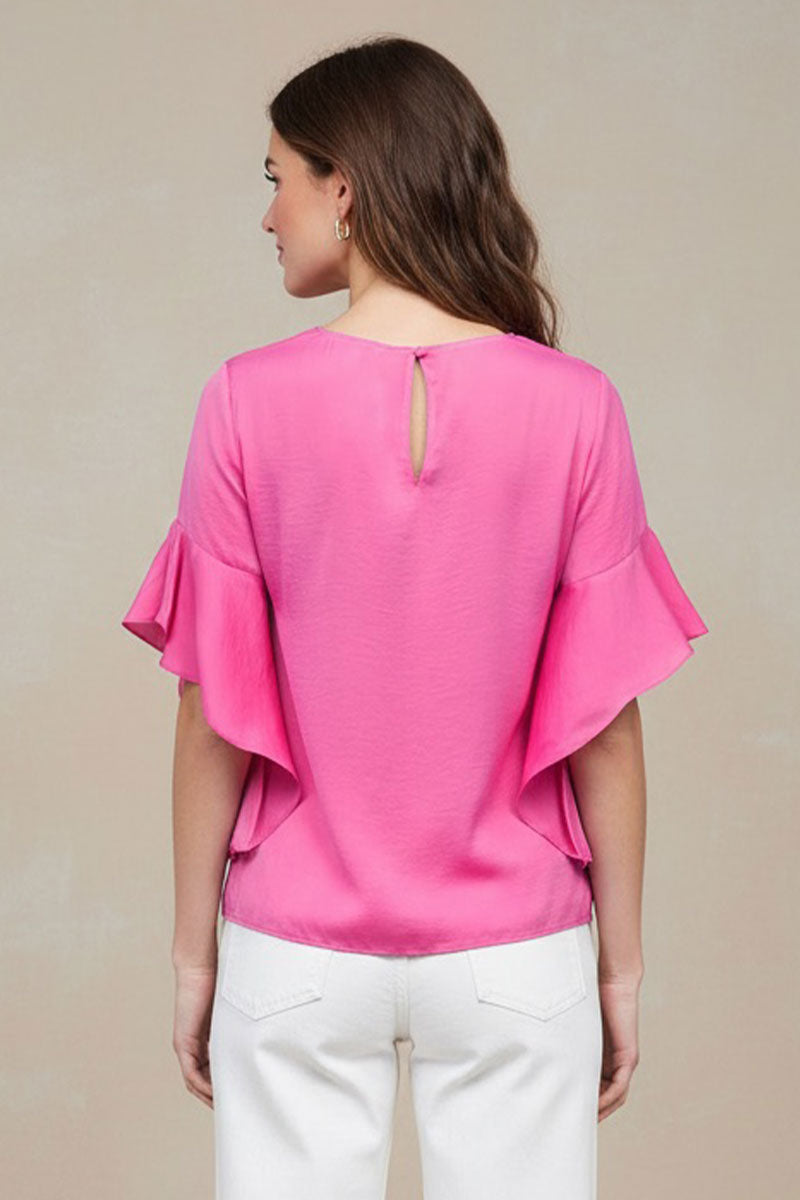 Bubble Sleeve Blouse With Back Keyhole Detail