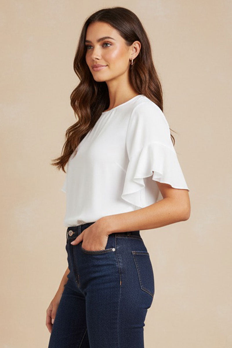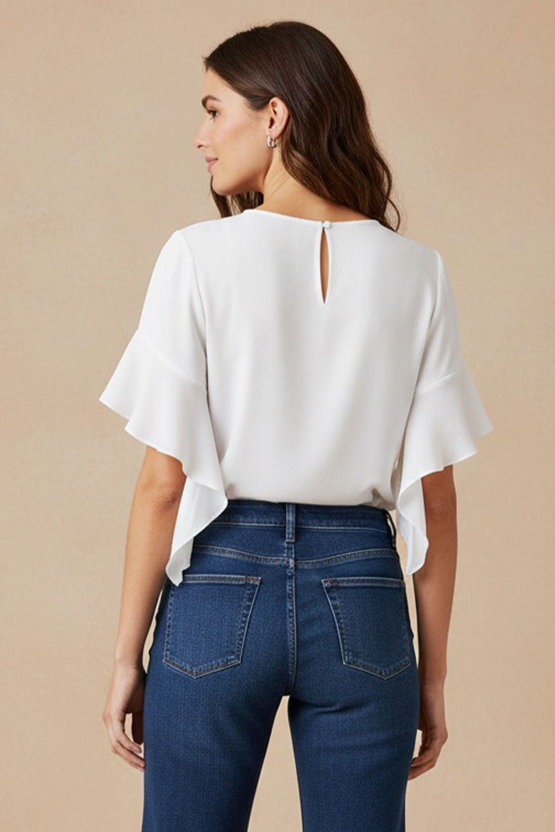 Bell Sleeve Round Neck Blouse