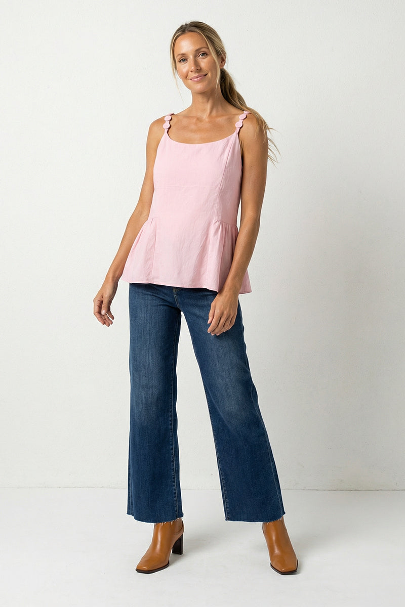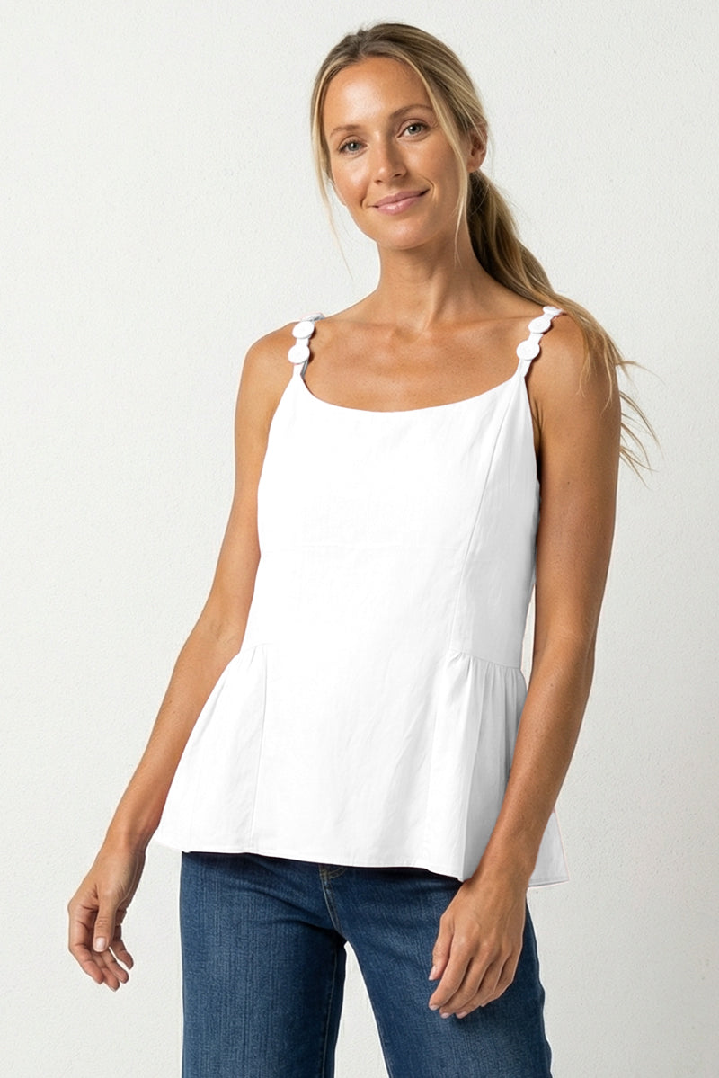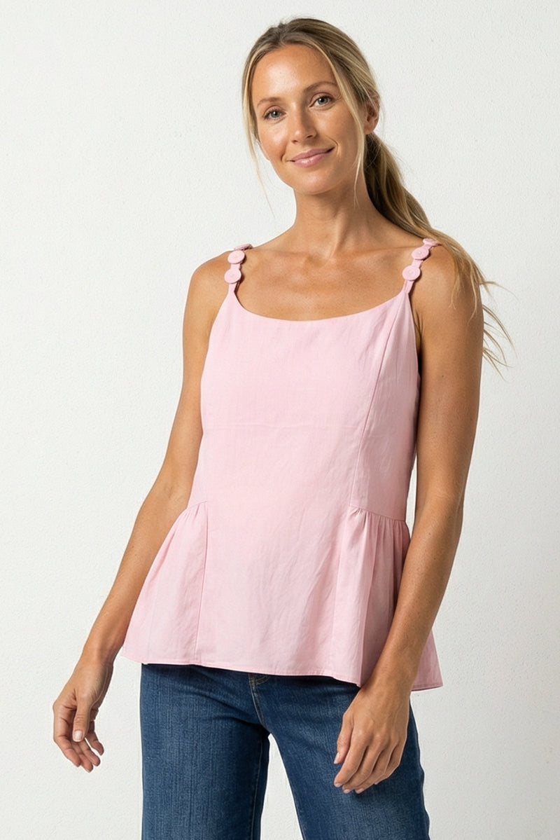 Button Detail Ruffle Tank Top