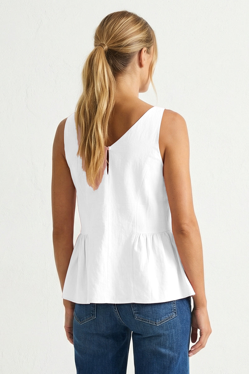 Linen Blend Sleeveless Top With Back Zipper