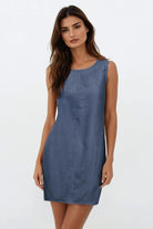 ╴Women's Sleeveless Soft Matte Mini Shift Dress