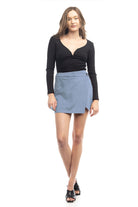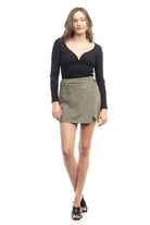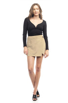 This wrap style mini skirt is perfect for adding a touch of sophistication to any outfit. With its flattering wrap style, it accentuates your curves and adds versatility to your wardrobe. Made from high-quality materials, it offers both comfort and style. Elevate your fashion game with this must-have piece.