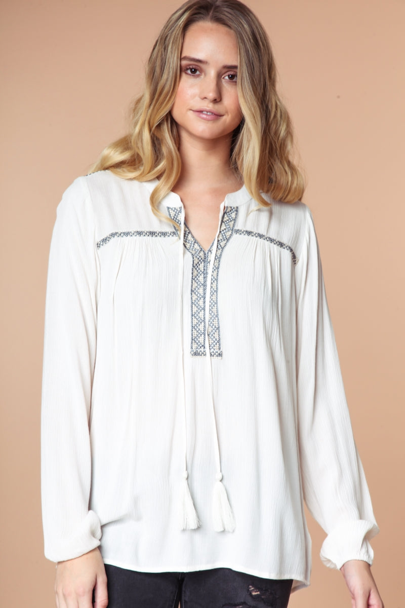 Embroidered Long Sleeve Blouse