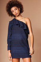 One Shoulder Ruffle Long Sleeve Dress