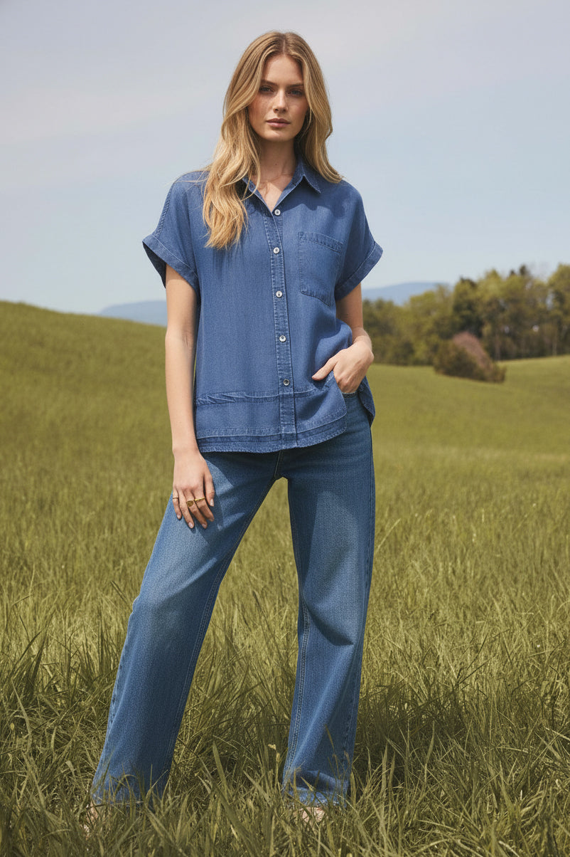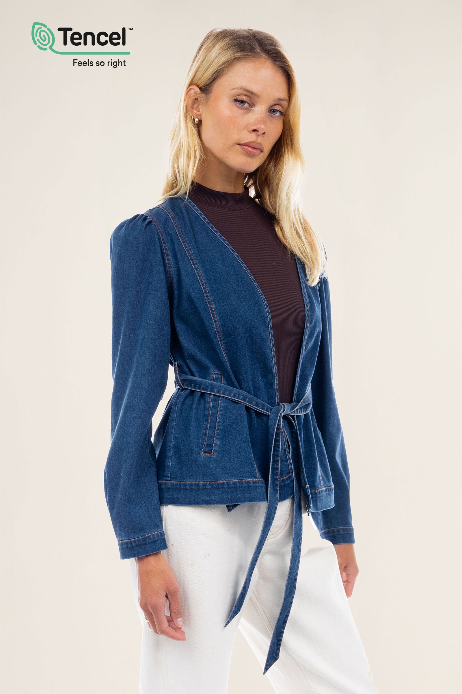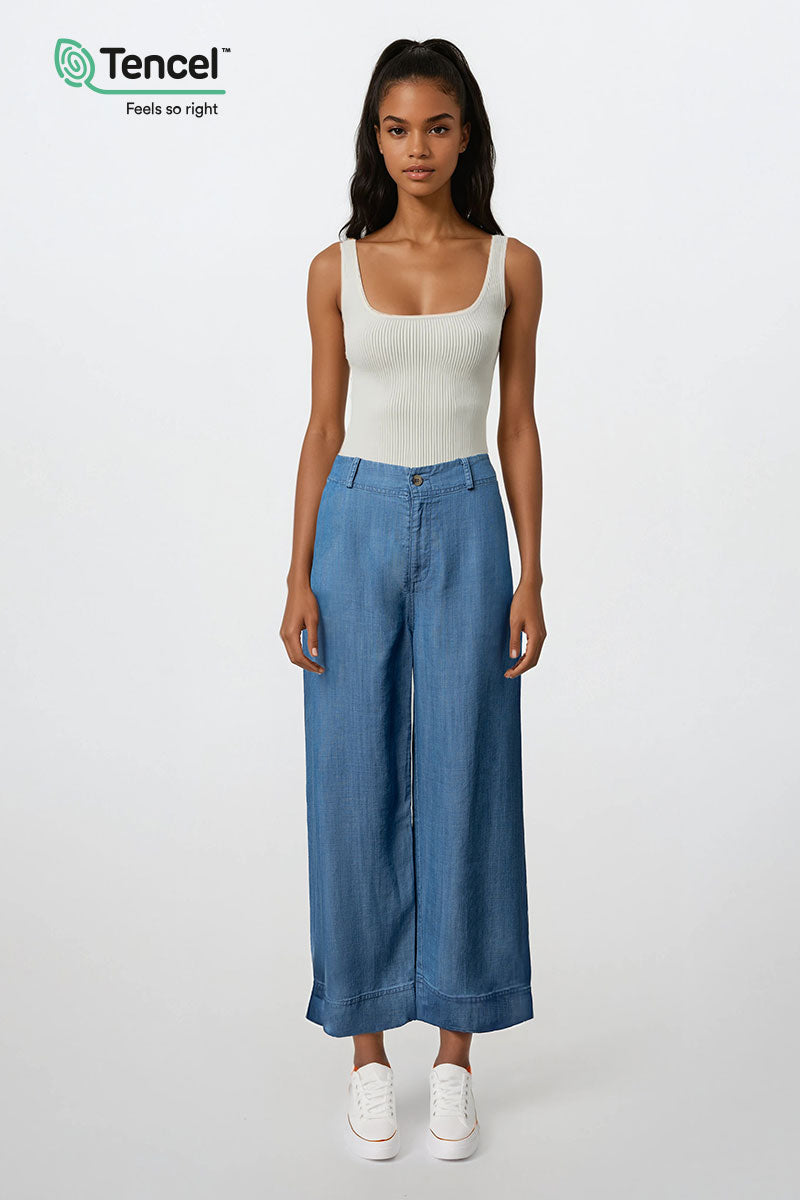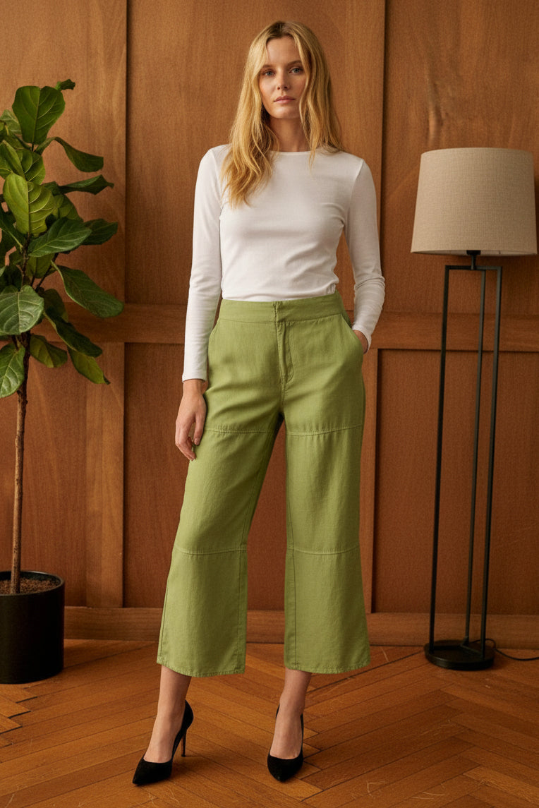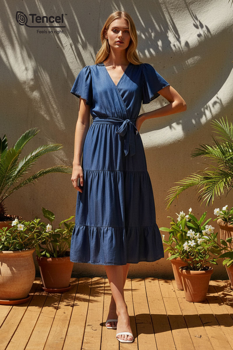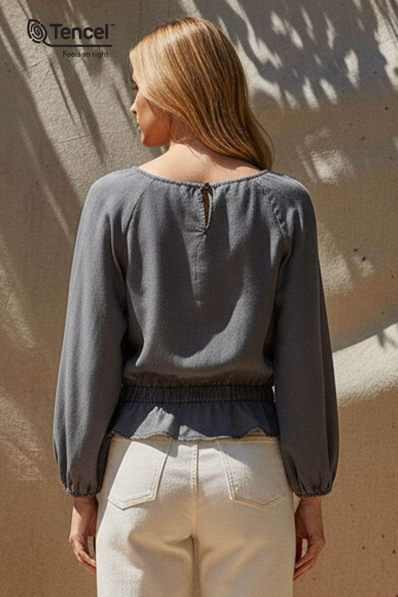 Our Tencel™ fabric is made from sustainably sourced wood pulp, offering a luxurious, eco-friendly alternative to traditional fabrics. Known for its silky-soft texture, Tencel™ is gentle on the skin, highly breathable, and moisture-wicking, keeping you cool and comfortable throughout the day. The fabric’s fluid drape creates flattering silhouettes, while its natural shine adds a touch of elegance. Plus, Tencel™ is biodegradable, making it a responsible choice for both your wardrobe and the planet.