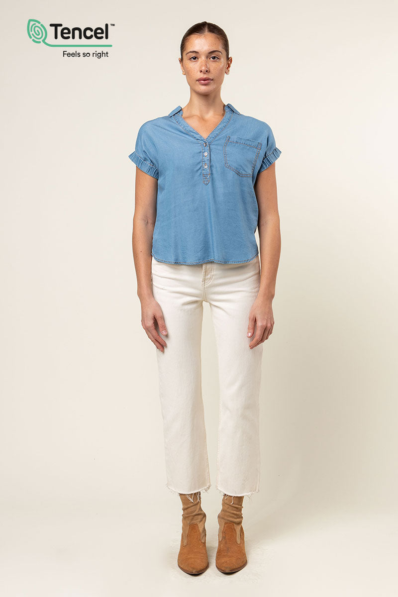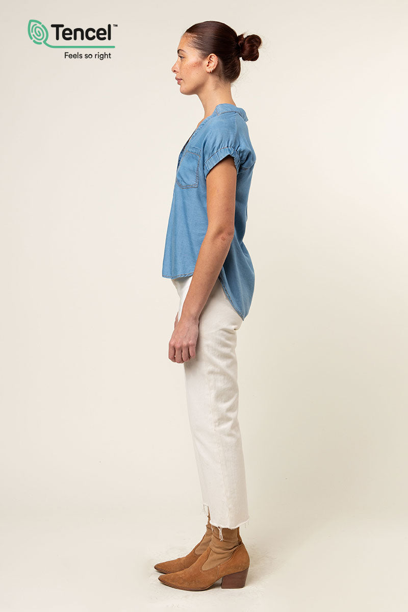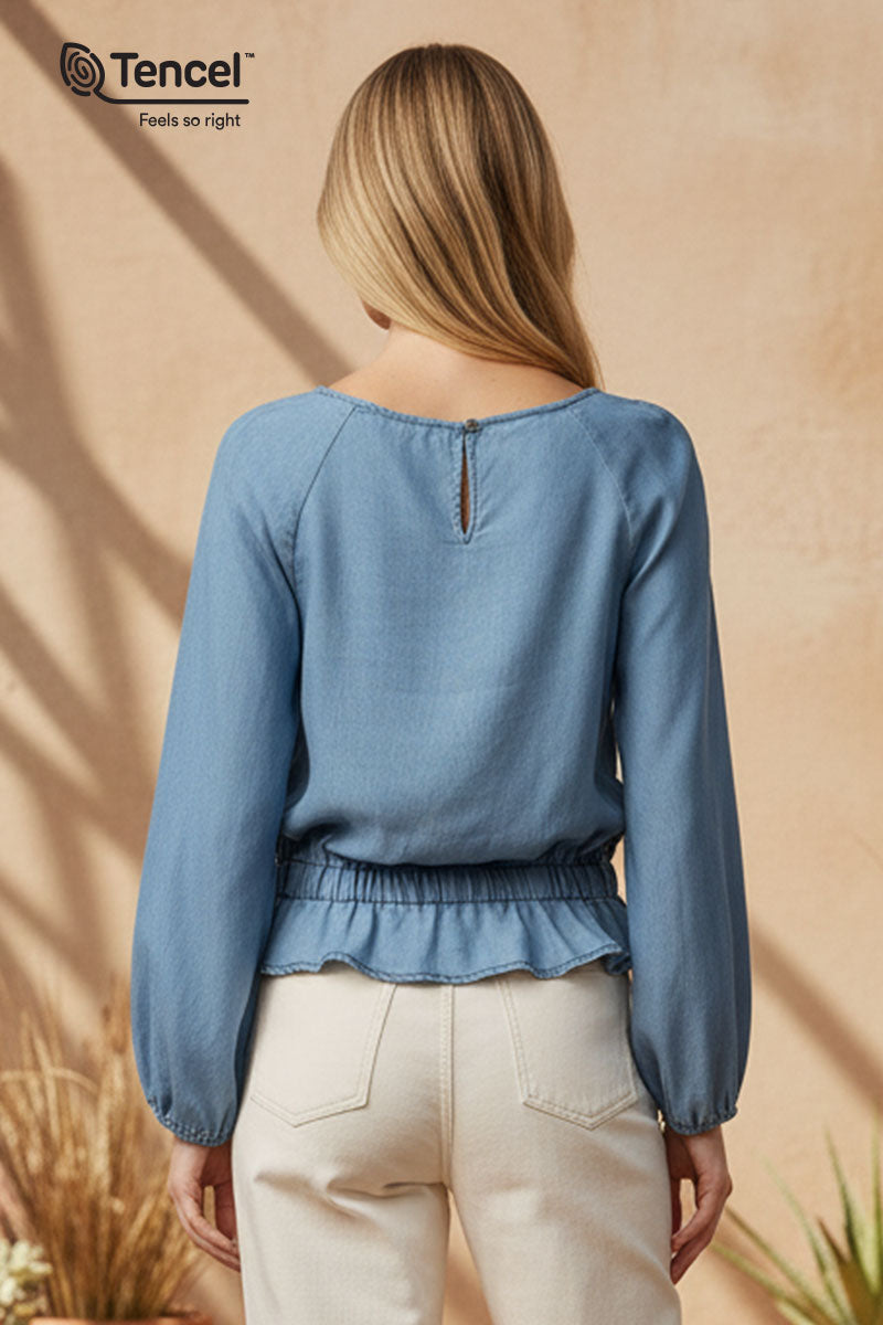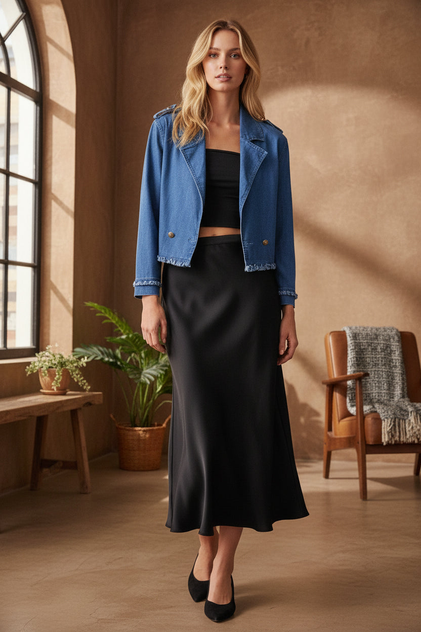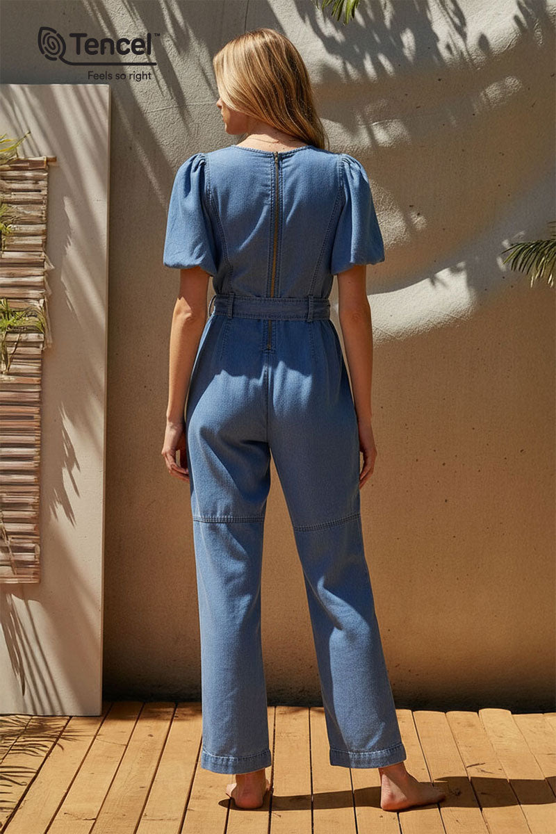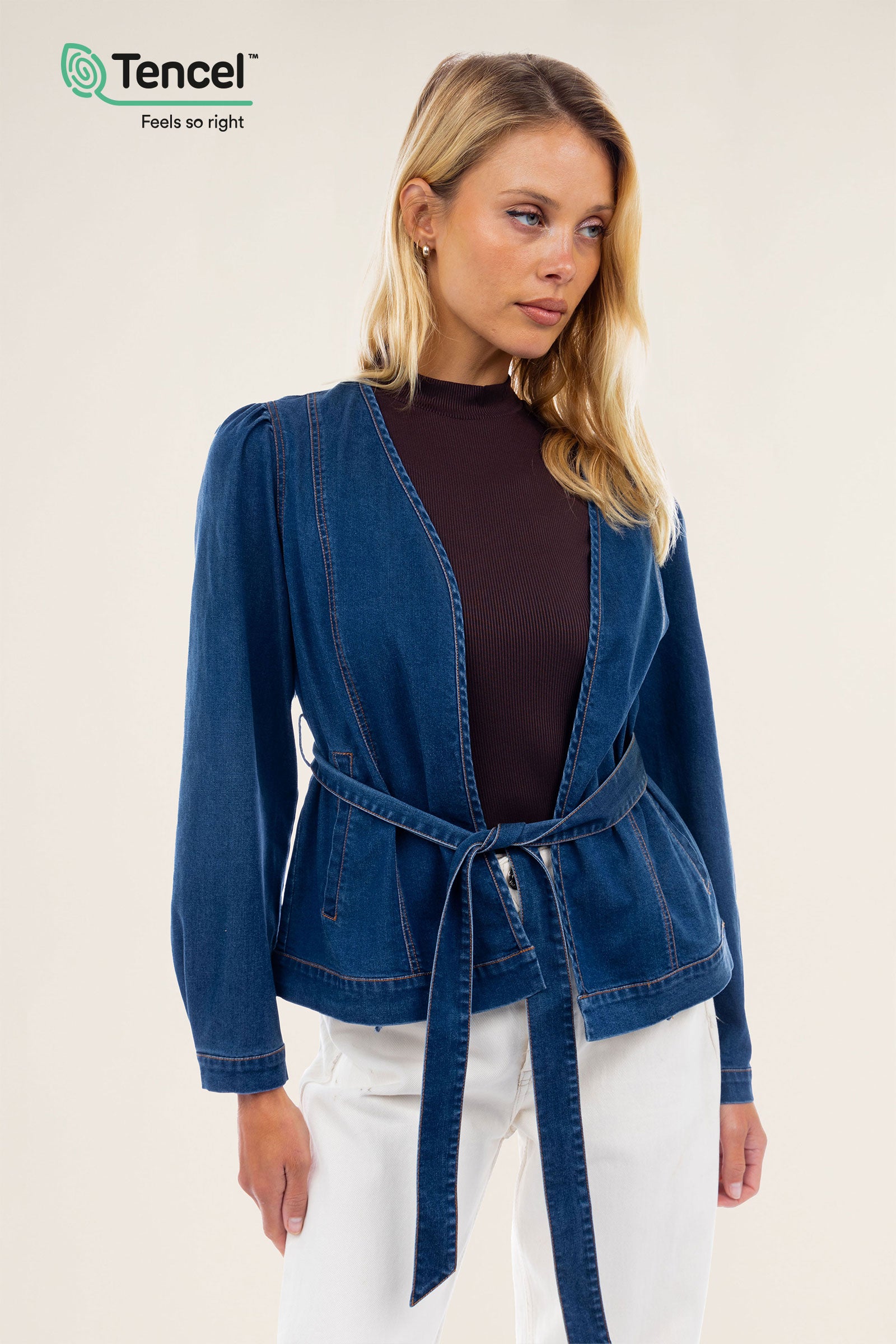 Our Tencel™ fabric is made from sustainably sourced wood pulp, offering a luxurious, eco-friendly alternative to traditional fabrics. Known for its silky-soft texture, Tencel™ is gentle on the skin, highly breathable, and moisture-wicking, keeping you cool and comfortable throughout the day. The fabric’s fluid drape creates flattering silhouettes, while its natural shine adds a touch of elegance. Plus, Tencel™ is biodegradable, making it a responsible choice for both your wardrobe and the planet.