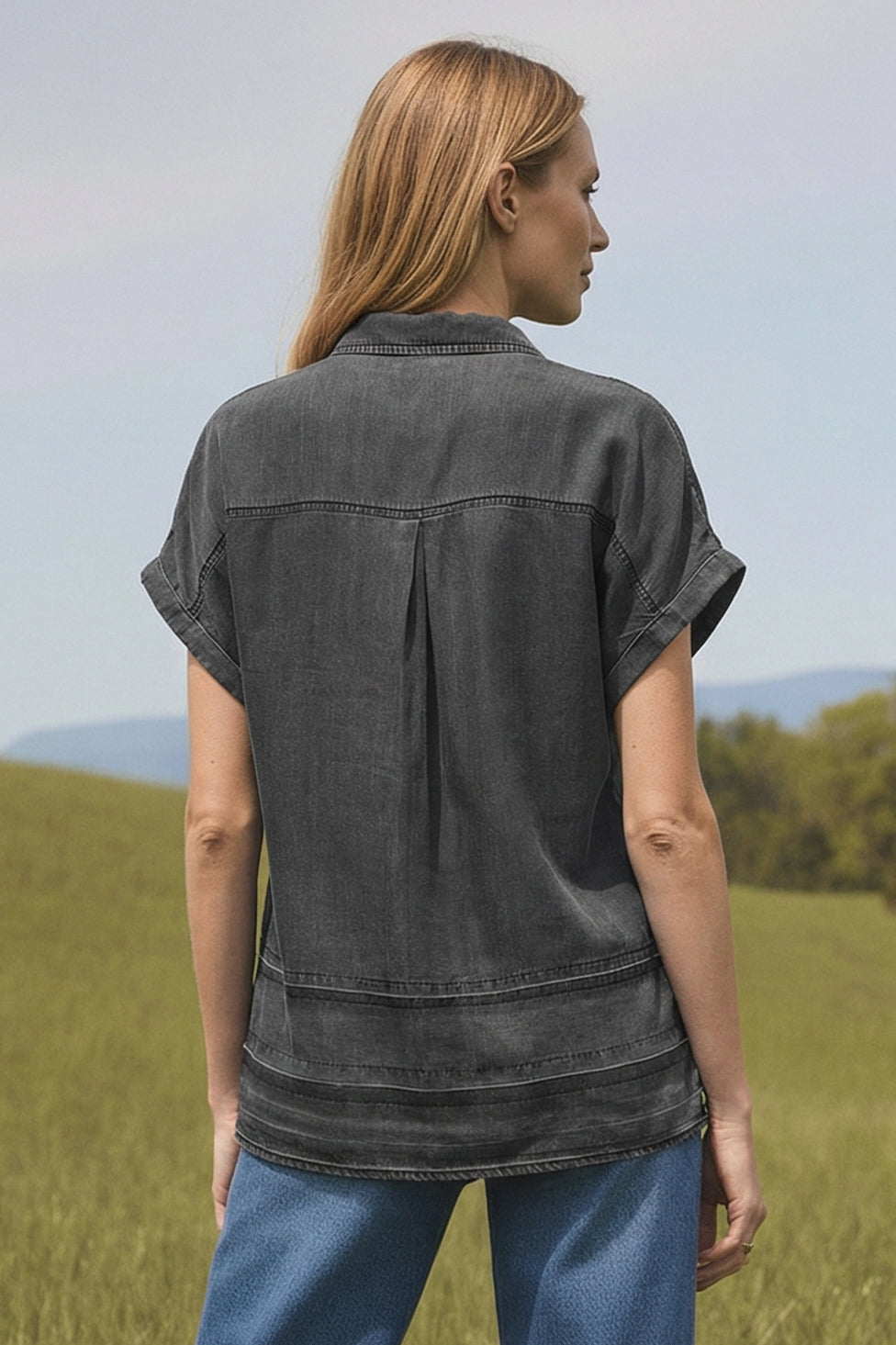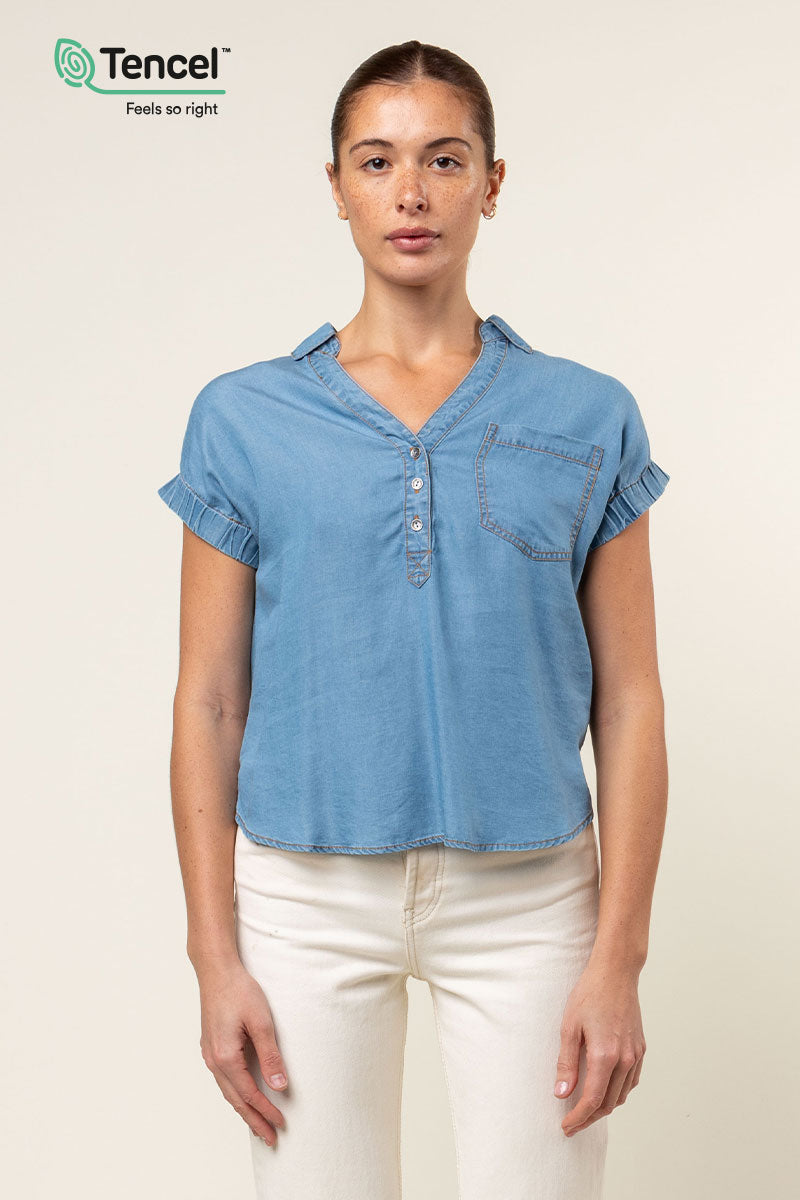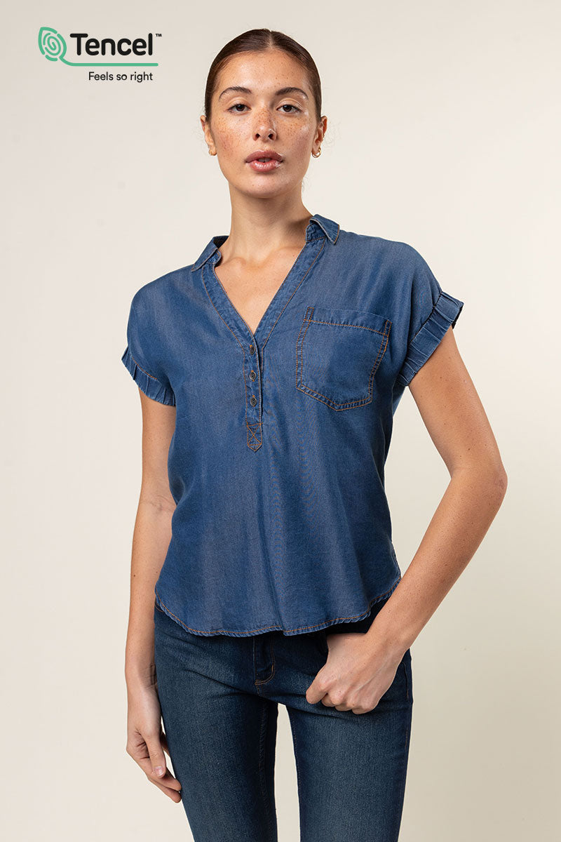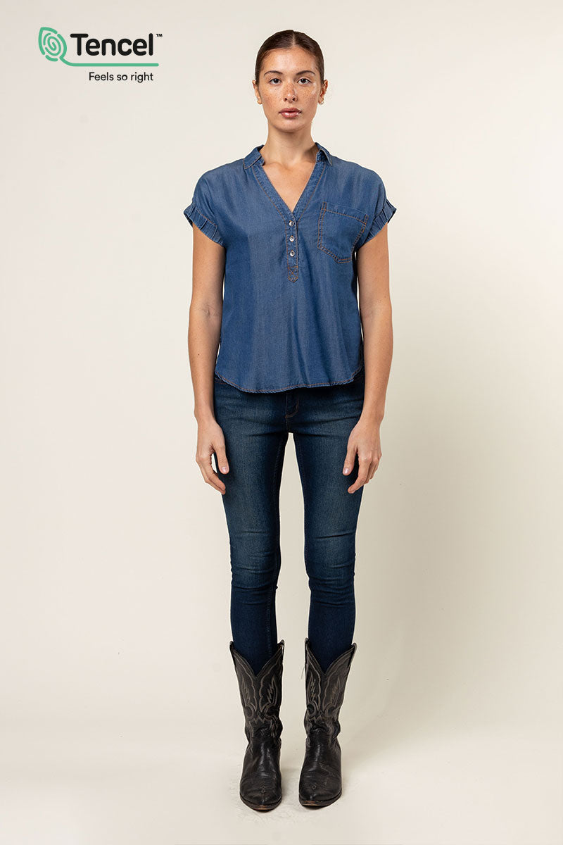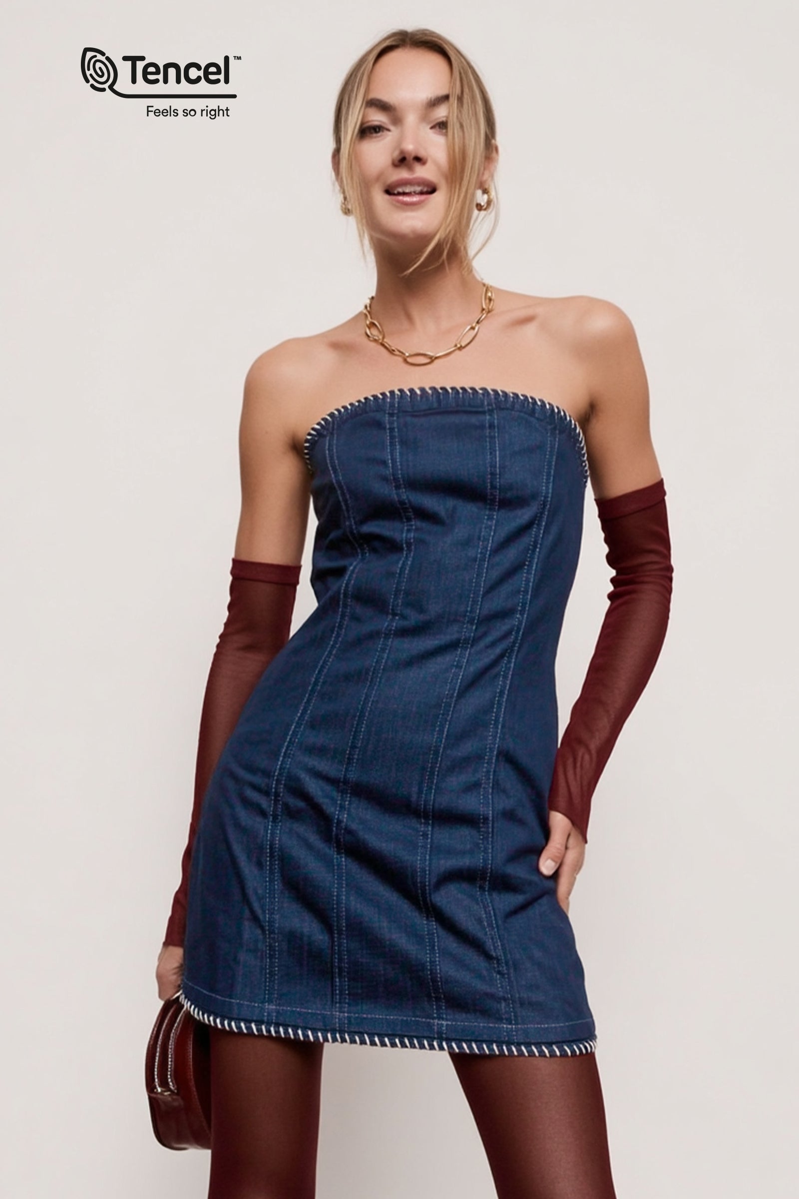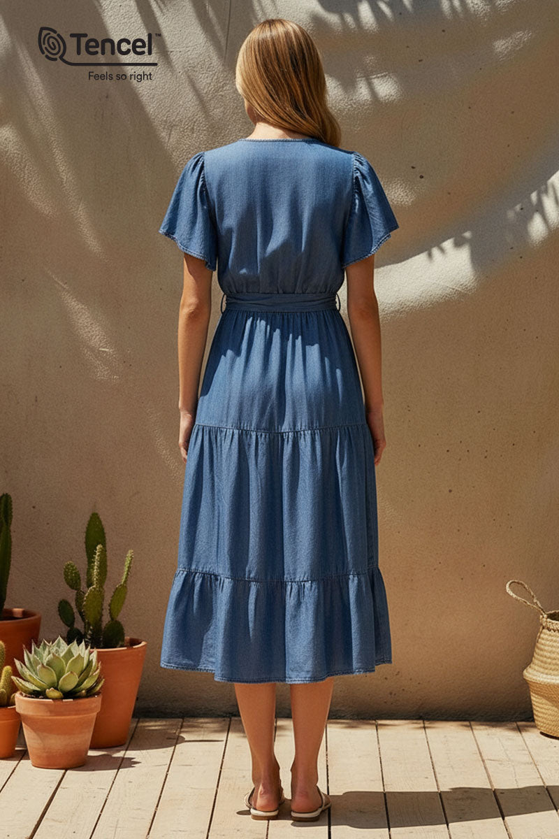 Our Tencel™ fabric is made from sustainably sourced wood pulp, offering a luxurious, eco-friendly alternative to traditional fabrics. Known for its silky-soft texture, Tencel™ is gentle on the skin, highly breathable, and moisture-wicking, keeping you cool and comfortable throughout the day. The fabric’s fluid drape creates flattering silhouettes, while its natural shine adds a touch of elegance. Plus, Tencel™ is biodegradable, making it a responsible choice for both your wardrobe and the planet.