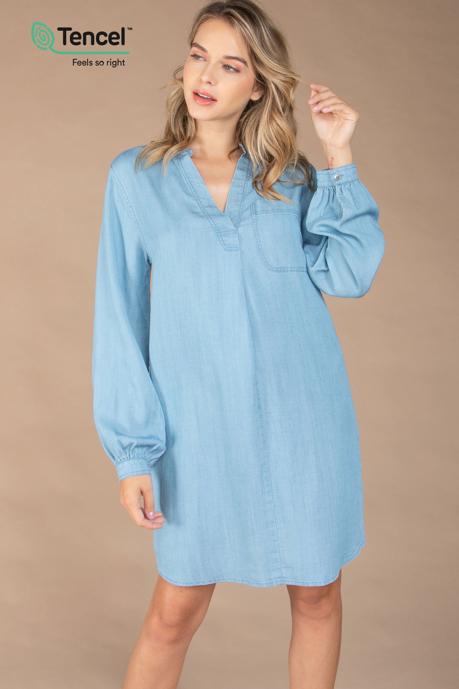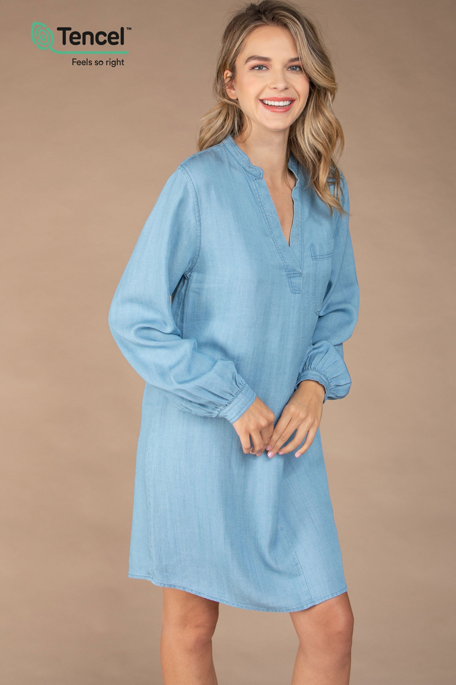 Crafted from sustainably sourced wood pulp, these dresses offer a luxuriously soft feel against the skin while providing breathable comfort. The fluid drape and natural shine of Tencel™ create flattering, feminine silhouettes, perfect for any occasion. With its eco-friendly properties and timeless design, our Tencel™ dresses offer a blend of style, comfort, and sustainability that you'll love to wear season after season.