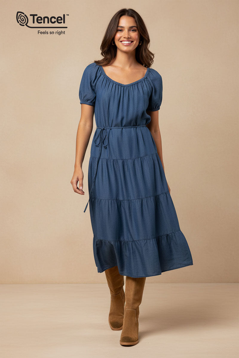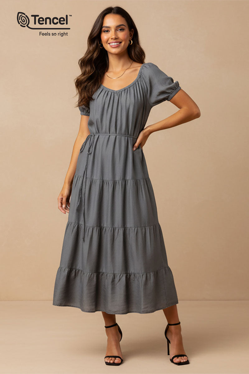 - Soft Tencel™ fabric with a tiered design for added flow.