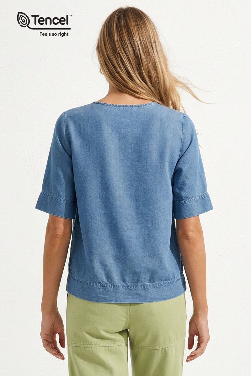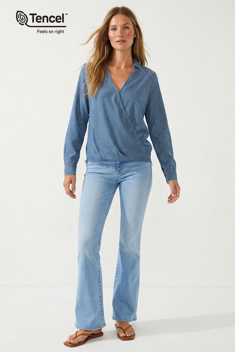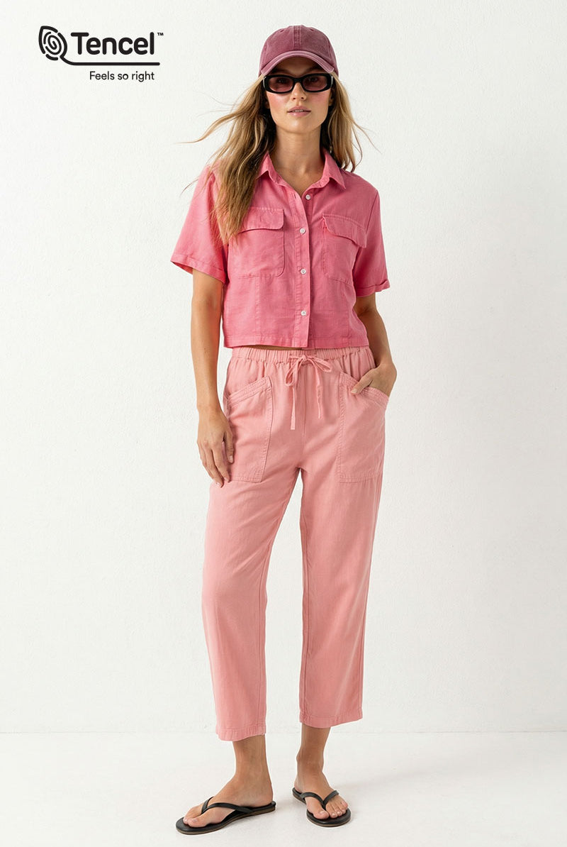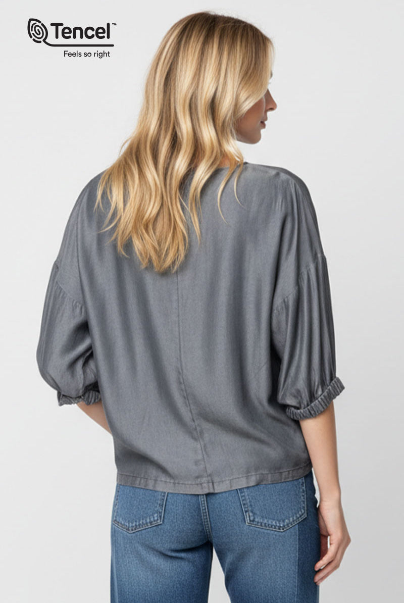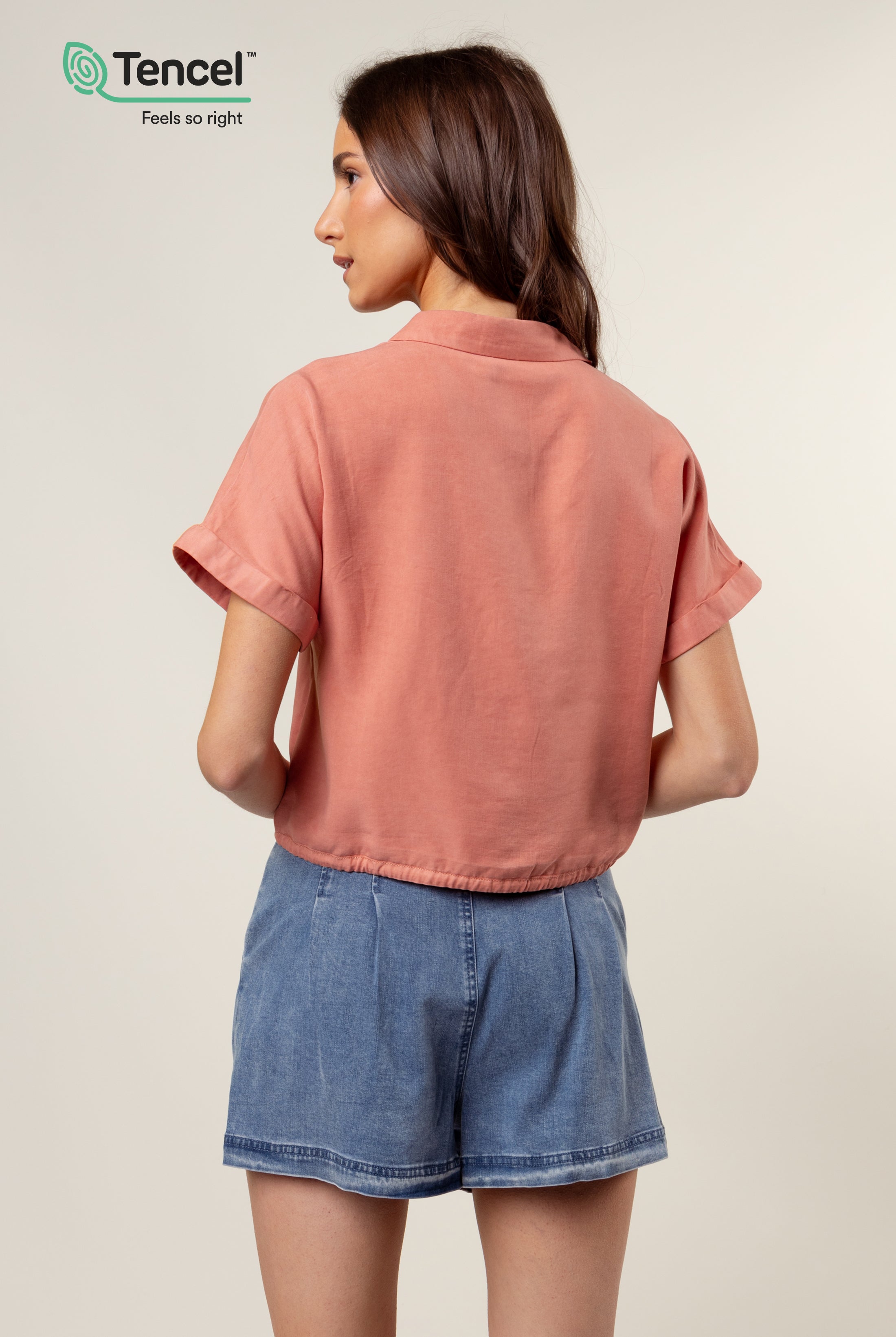 Our Tencel™ fabric is made from sustainably sourced wood pulp, offering a luxurious, eco-friendly alternative to traditional fabrics. Known for its silky-soft texture, Tencel™ is gentle on the skin, highly breathable, and moisture-wicking, keeping you cool and comfortable throughout the day. The fabric’s fluid drape creates flattering silhouettes, while its natural shine adds a touch of elegance. Plus, Tencel™ is biodegradable, making it a responsible choice for both your wardrobe and the planet.