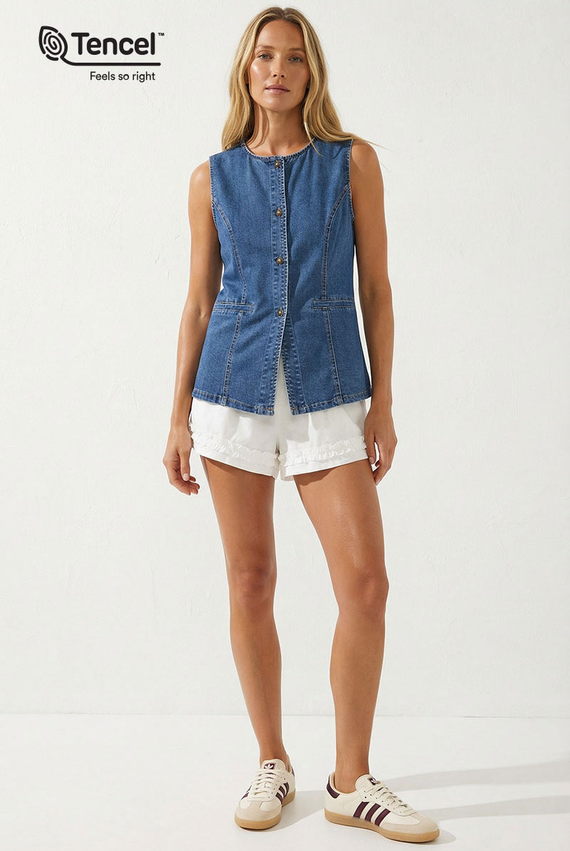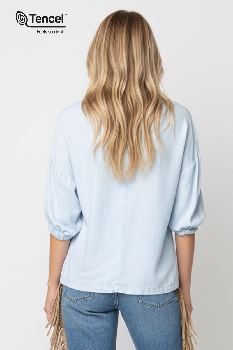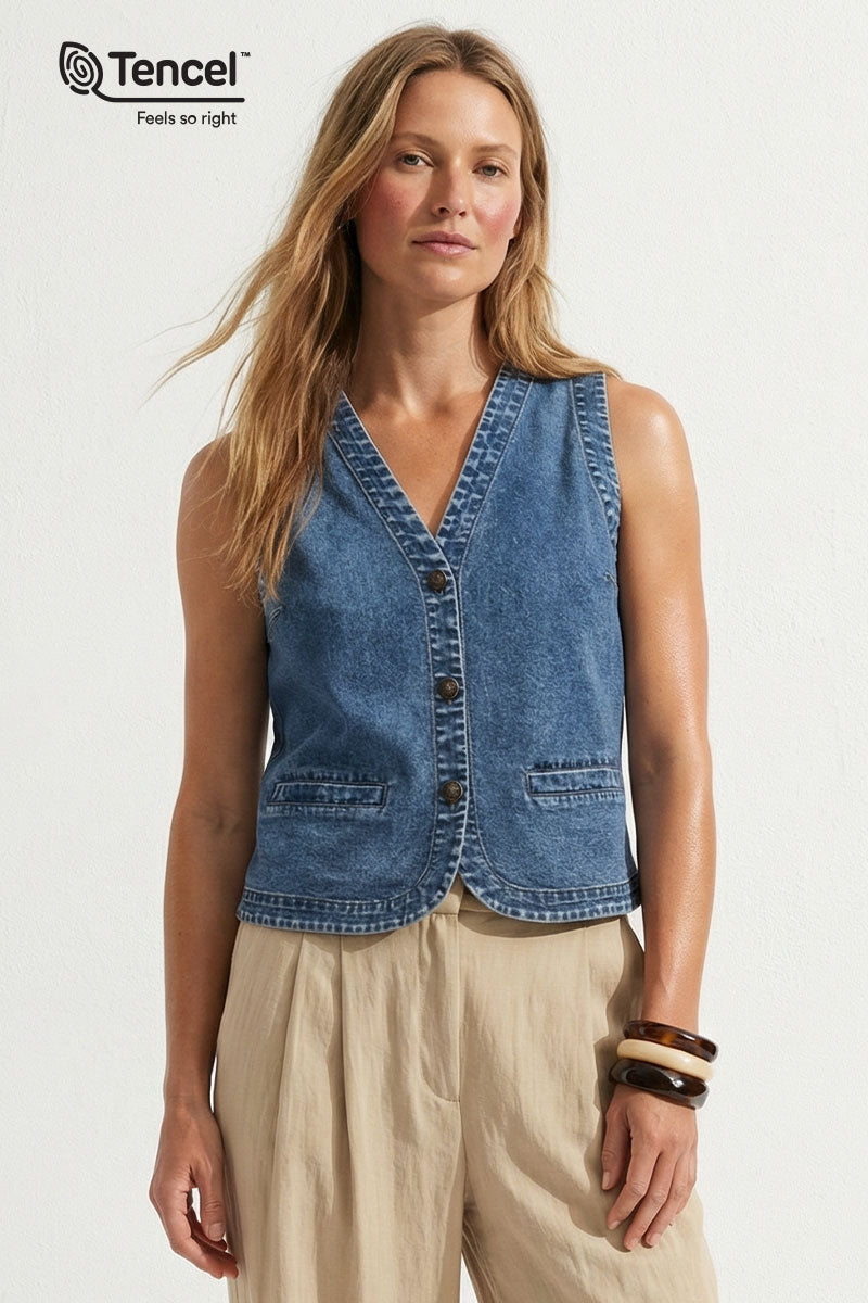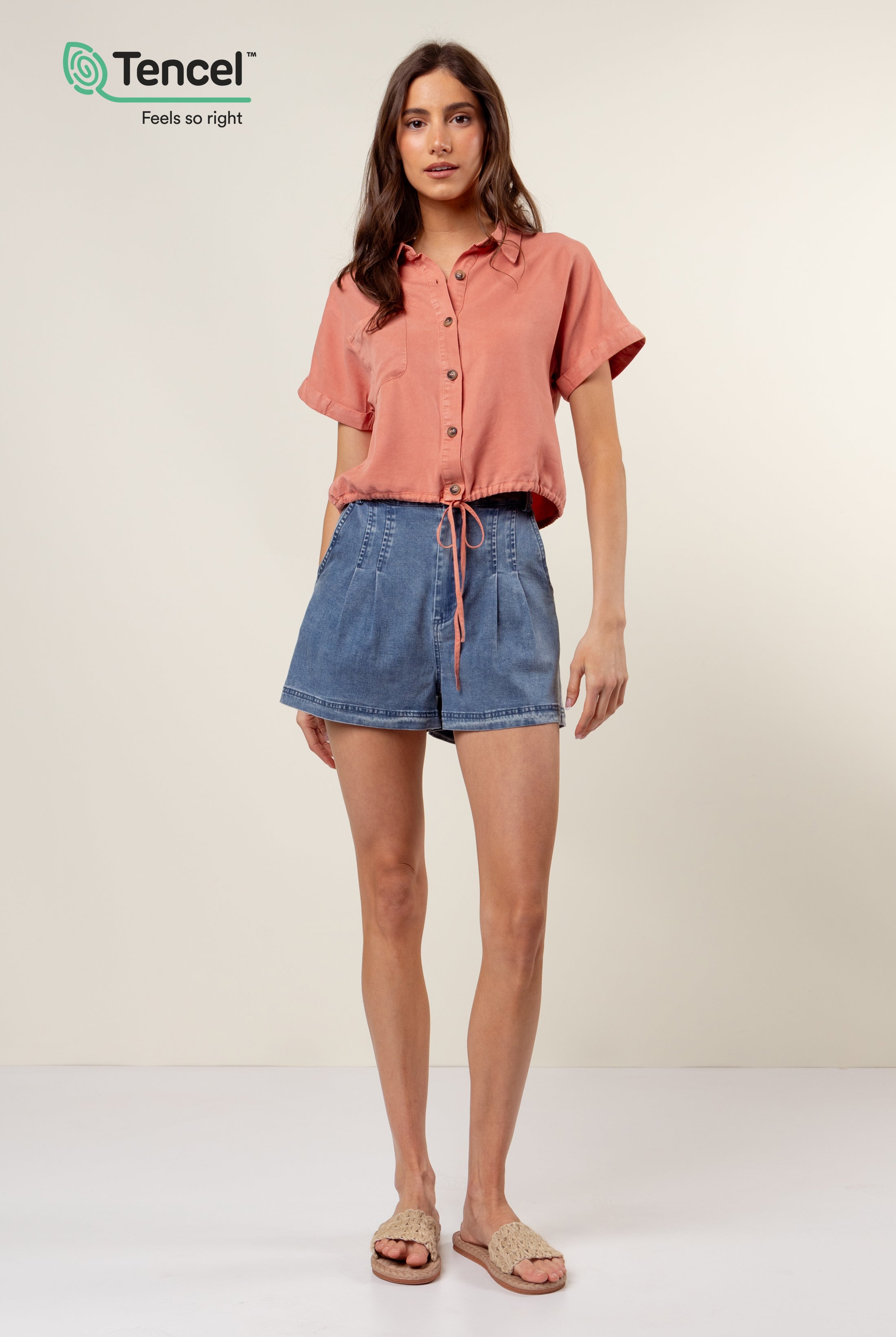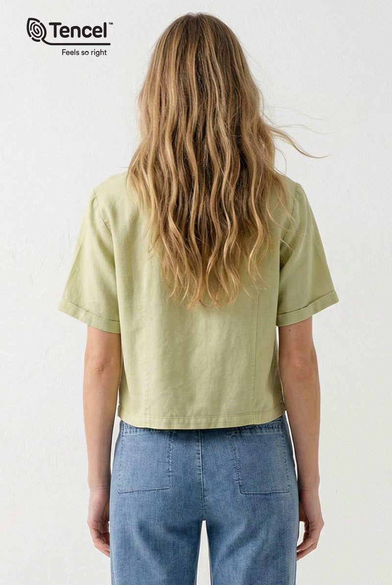 Our Tencel™ fabric is made from sustainably sourced wood pulp, offering a luxurious, eco-friendly alternative to traditional fabrics. Known for its silky-soft texture, Tencel™ is gentle on the skin, highly breathable, and moisture-wicking, keeping you cool and comfortable throughout the day. The fabric’s fluid drape creates flattering silhouettes, while its natural shine adds a touch of elegance. Plus, Tencel™ is biodegradable, making it a responsible choice for both your wardrobe and the planet.
