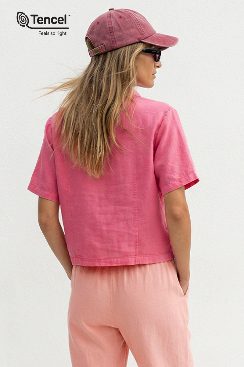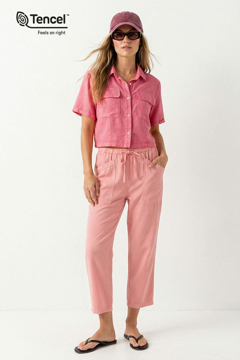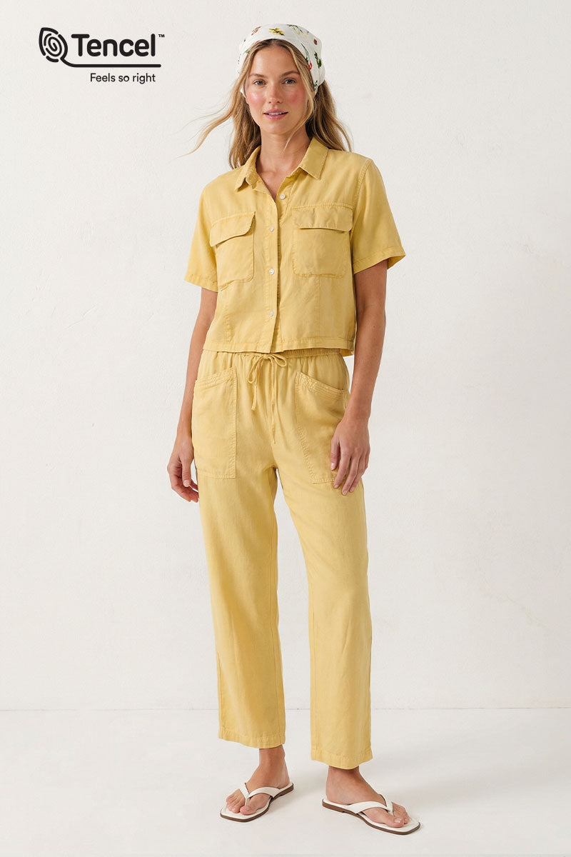 - Soft Tencel™ fabric with a garment-dyed finish for a relaxed, lived-in look.