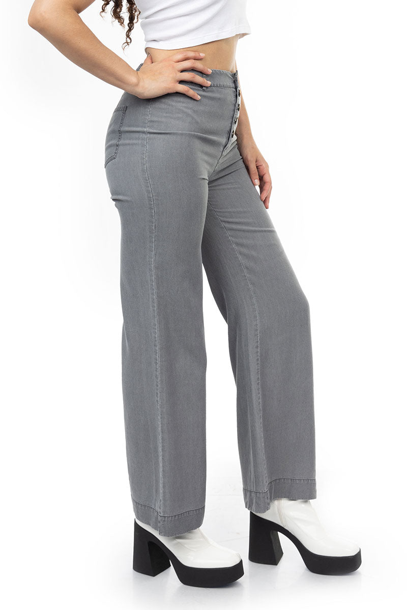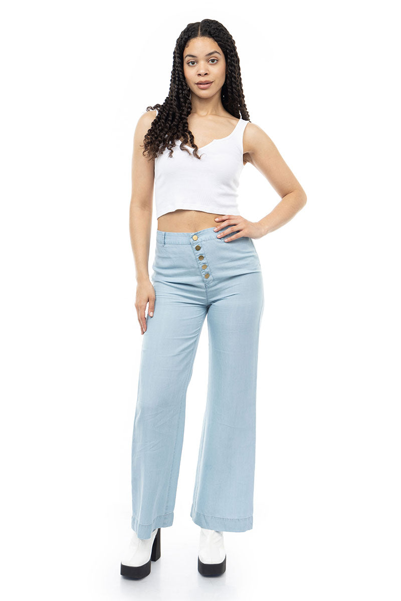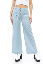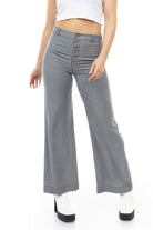 Elevate your style with the High-Waisted Wide Leg Crop Pant from Naked Zebra's sister company, 1250C, featuring an exposed button fly for a touch of modern sophistication. Designed to flatter, these pants offer a high-waisted silhouette, creating a fashion-forward statement. The wide leg and exposed button fly combine for a contemporary look, making these crop pants a perfect choice for various occasions. Embrace the trend and experience the perfect blend of comfort and style with this on-trend piece from the 1250C collection.