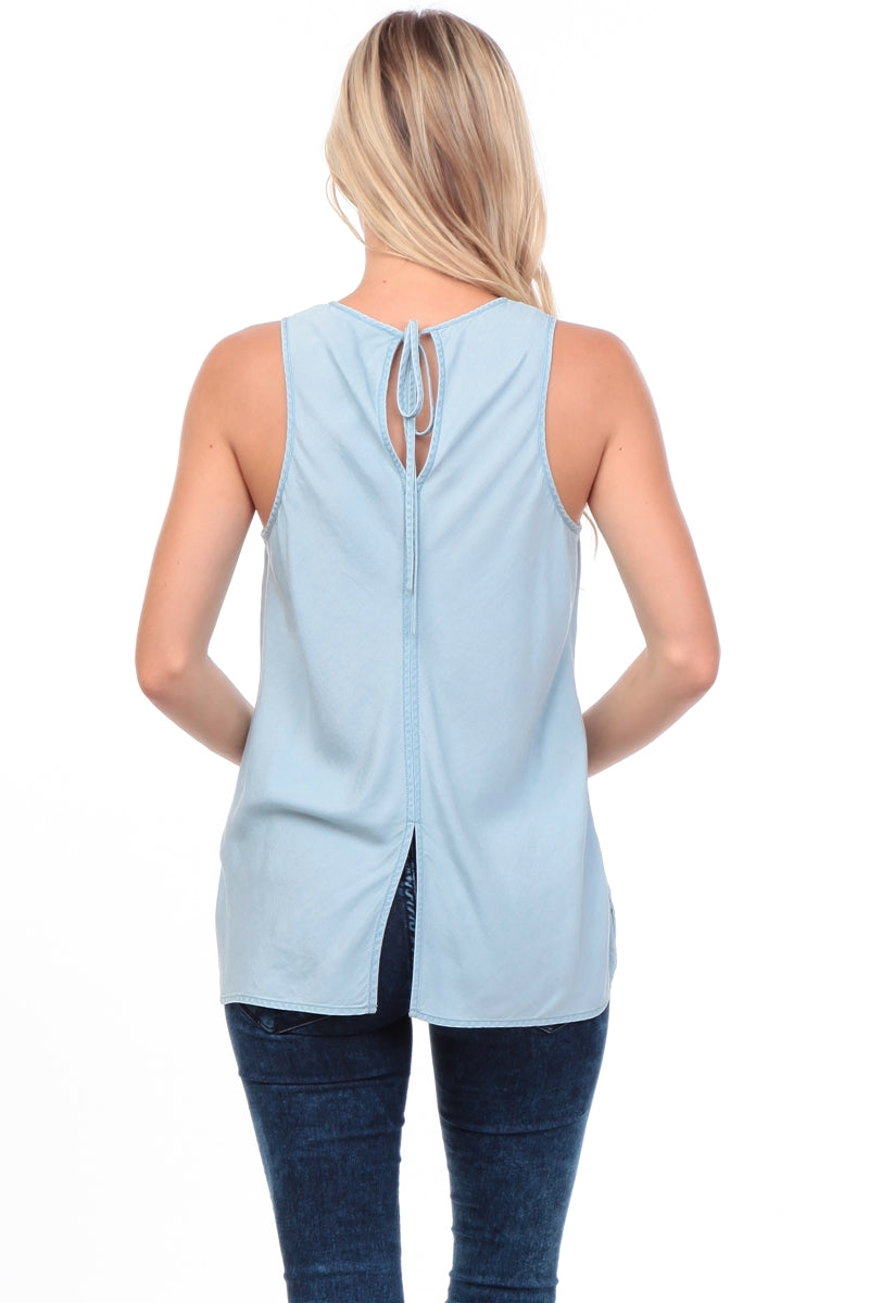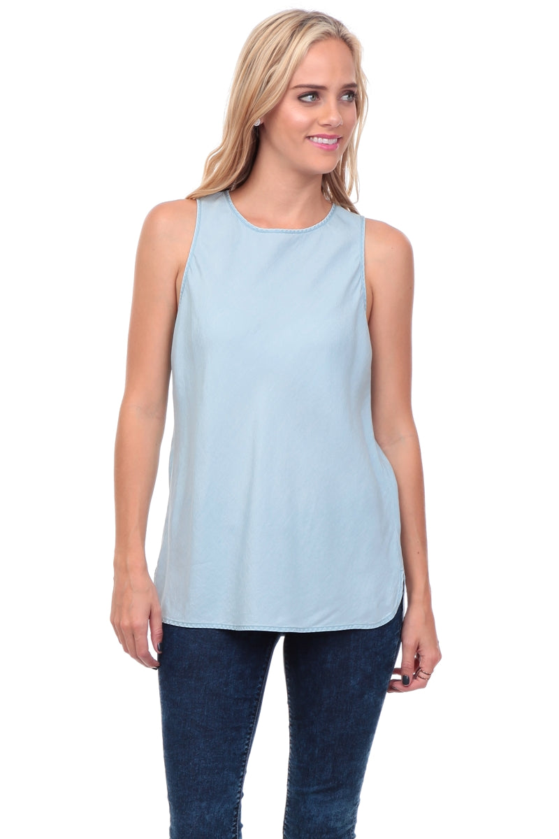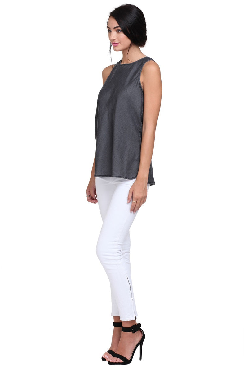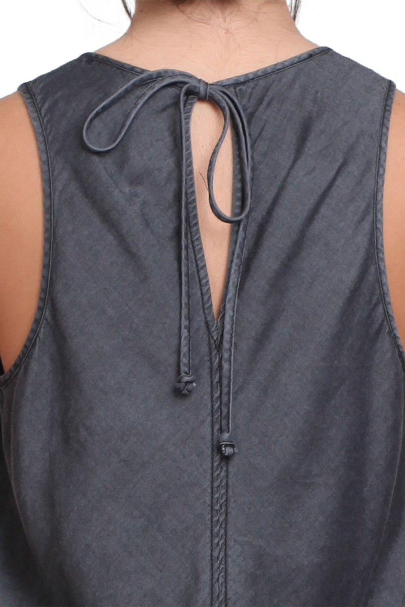 A modern essential crafted from soft, eco-friendly TENCEL fabric known for its luxurious drape and breathability. This elevated tank features a clean front and an adjustable back tie for a customizable fit. A versatile piece perfect for effortless layering or chic stand-alone styling.