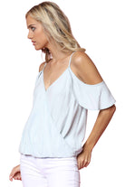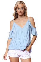This refined Cold Shoulder Crossover Tank elevates casual attire with its architectural design elements. The strategic shoulder cutouts provide breathability while maintaining a polished aesthetic, and the crossover front creates a flattering neckline that enhances various body types. Constructed with premium fabric that offers both structure and movement, this versatile piece seamlessly integrates into professional and social settings alike.